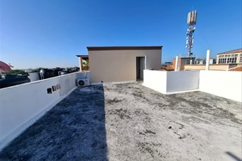 Cuarto piso con terraza destechada y balcón, 3 habitaciones, cuarto de servicio, 2 1/2 baños, sala, comedor, cocina, balcón, 1 parqueo, disponibilidad de parqueo adicional.