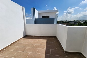 Apartamento con terraza tipo PH en alquiler en LP9. 4to piso 89 mts + terraza + estar familiar 3 habitaciones 2 baños completos Sala-comedor Cocina Área de lavado 1 parqueo Medio baño en el 2do nivel Residencial cerrado con seguridad 24 horas, canchas deportivas, áreas de juego infantil, salón multiuso RD$31,000.00 Mantenimiento incluido Alquiler mínimo 1 año Debe contar con fiador solidario