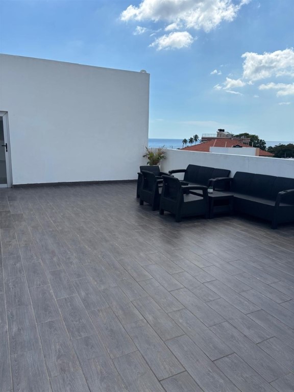 Alquilo apto en 1er nivel en el *Sector mar azul, D.N.* A estrenar * 1 habitación * ?Sala - comedor * ?1 parqueo * ?1 1/2 baños * ?cocina * ?área de lavado * ?Seguridad 24/7 * ?Sistema de cámara de vigilancia. * ?Área social. * ?Fácil accedo a la Av. Independencia y Av. 30 de Mayo. * ?Renta 35,000, con mantenimiento incluido . el gas es común.