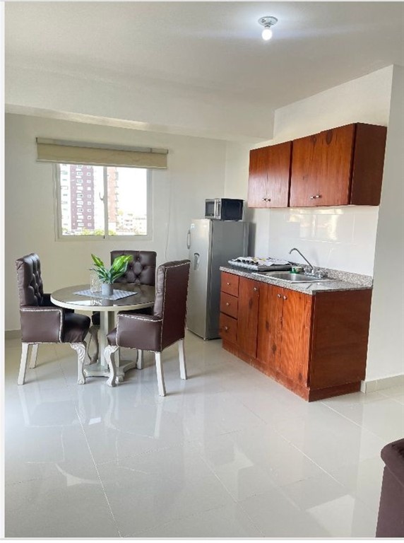Alma Rosa I Apartaestudios amueblados disponible para alquiler Para habitar 2 Personas máximo PRECIO DE ALQUIER: RD$30,000 Sobre el apartaestudio: 5to piso (No ascensor) 1 Habitación / Sala / Cocina (Todo en un mismo ambiente) 1 Baño Balcón tipo terraza con vista despejada El alquiler incluye: Luz Intercom Internet Agua Lavadora Secadora Seguridad 24/7 Requisitos: Carta de trabajo Cédula Buró de crédito de inquilino y fiador Estados de cuenta de los últimos 3 meses del inquilino y fiador 2+1 Depoósitos