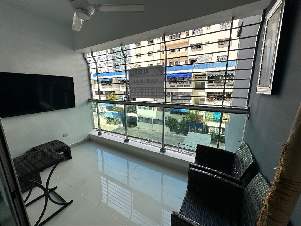 SEMI- AMUEBLADO Bella Vista, destinado para fines Residenciales, con una área de construcción de 155 metros cuadrados, con la siguiente distribución: sala, comedor, balcón, cocina, área de lavado, cuarto de servicio con su baño , 3 habitaciones, 2 y medio Baños, y vestidor en las habitación , Dos (02) parqueos techados, puertas y gabinetes en Madera Preciosa, Pisos en Porcelanato, calentador de agua, planta full, Ascensor“.Áreas Sociales, Semi- Amueblado. US$1,350