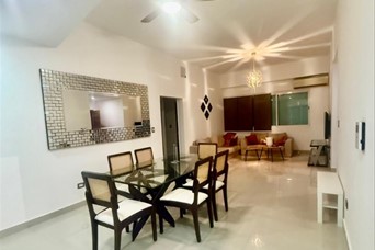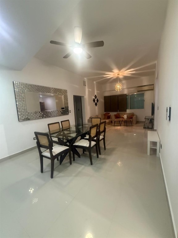 Hermoso apartamento amueblado y céntrico cerca del Club Bodyshop. Bella Vista 156 mt2 2 habitaciones (principal con baño y walk in closet 2 Baños Sala Comedor Balcón tipo terraza Cocina Área de Lavado Cuarto de servicio 2 parqueos techados Ascensor Área Social : Jacuzzi con vista ciudad Salón de reuniones Terraza abierta y terraza techada 2 Áreas de snack bar Gimnasio Precio Renta: US$1,500. Incluye mantenimiento.
