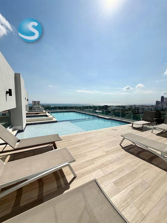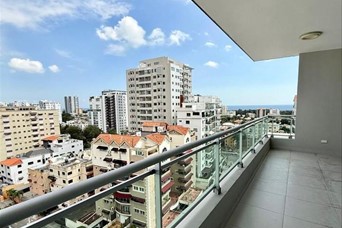 Moderno piso alto en alquiler ubicado en Bella Vista Piso 10 3 habitaciones 3.5 baños Sala Comedor Cocina Locker Balcón Habitación de servicio 2 parqueos Amenidades y características de la torre Portón eléctrico 3 ascensores Luz 24 hrs Cámaras de seguridad Planta full Gimnasio Lobby climatizado Gas común Precio de alquiler US$2,300 Informacion Welin Jimenez 809-829-3185 MAR. C.