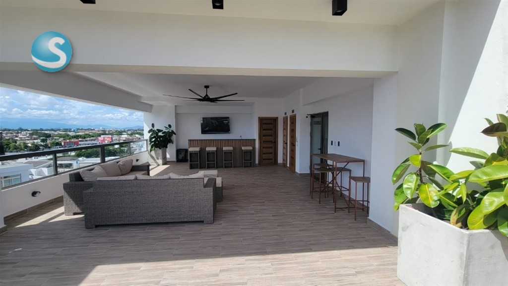 Apartamento en alquiler en el sector de El Millón 1 habitación con su baño 1.5 baño 1 parqueo techado Sala/comedor Cocina Area de lavado Llavín inteligente Piso de cerámica Gimnasio BBQ Terraza techada/destechada Área de juegos para niños Lobby climatizado y amueblado Porton electrico Planta full Paneles solares