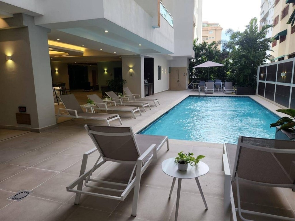 Alquiler Totalmente Amueblado Torre moderna de Naco 130 mts 2 amplias habitaciones 2.5 baños Sala-comedor Balcón Habitación de servicio completa Área de lavado Amenidades completas Piscina adultos Piscina niños Área de BBQ kitchenette Bar Gimnasio Salón de reuniones Espectacular lobby Seguridad 24 horas Ducto de basura Alquiler US$2,200 mantenimiento incluido JACQ. M.