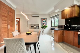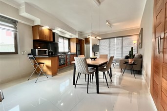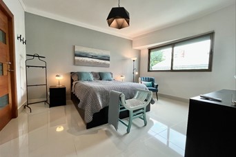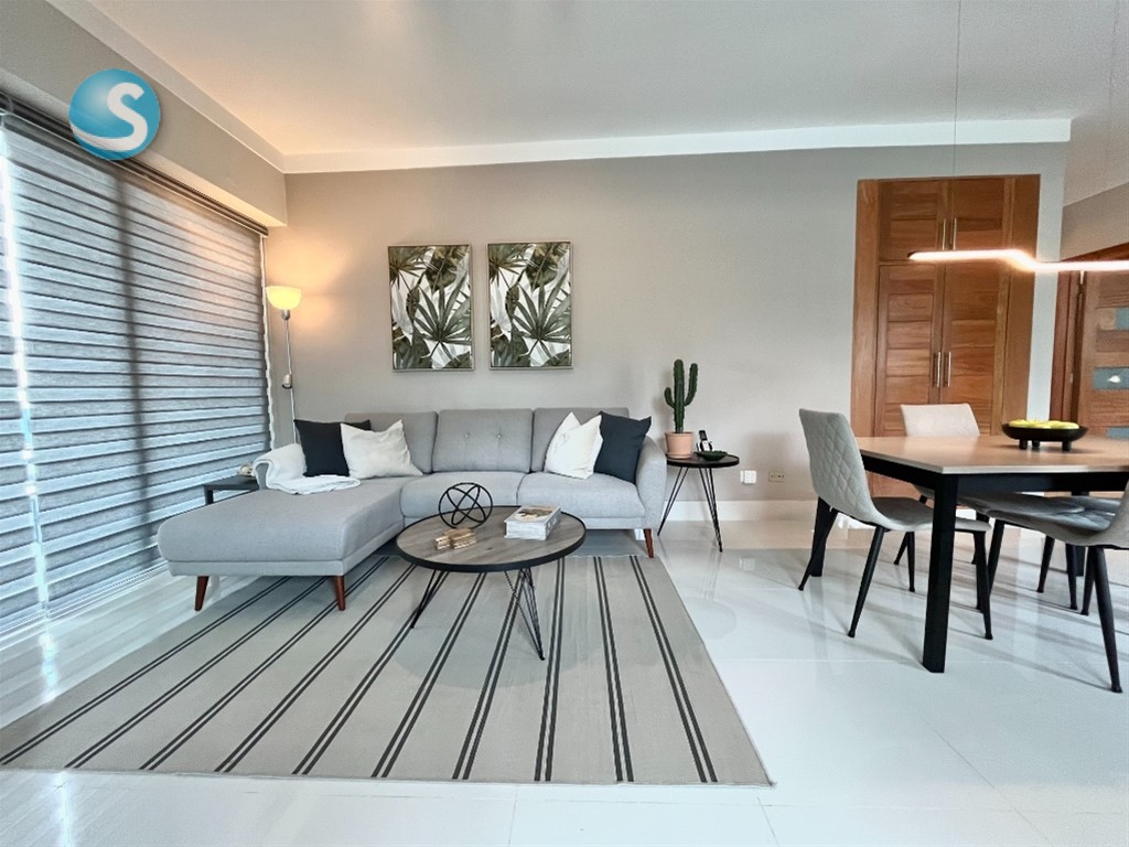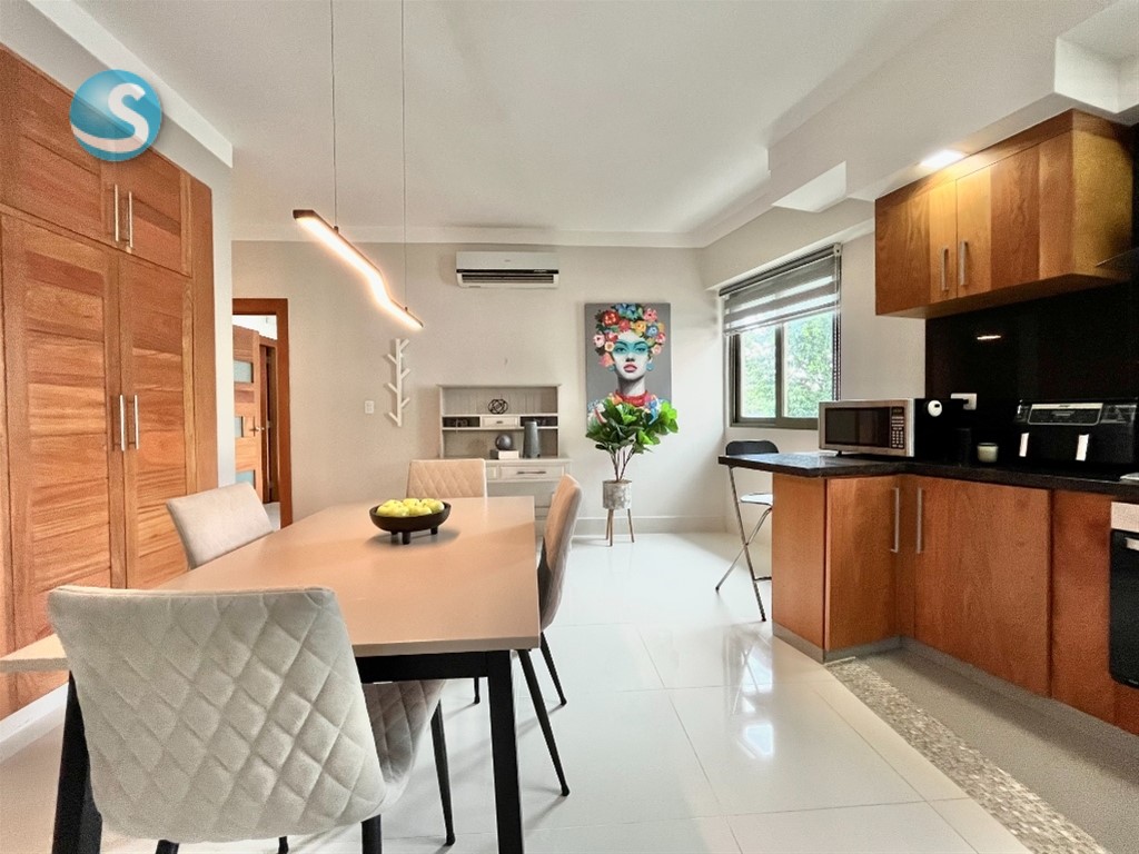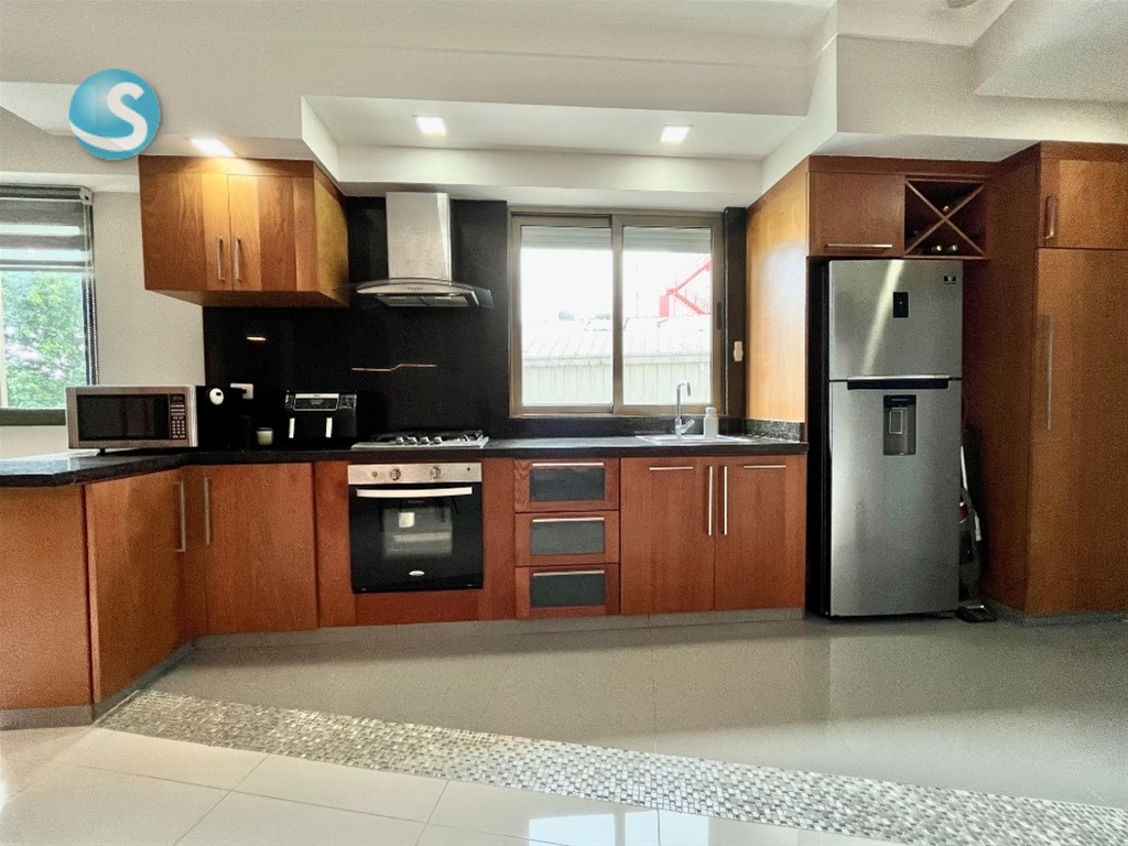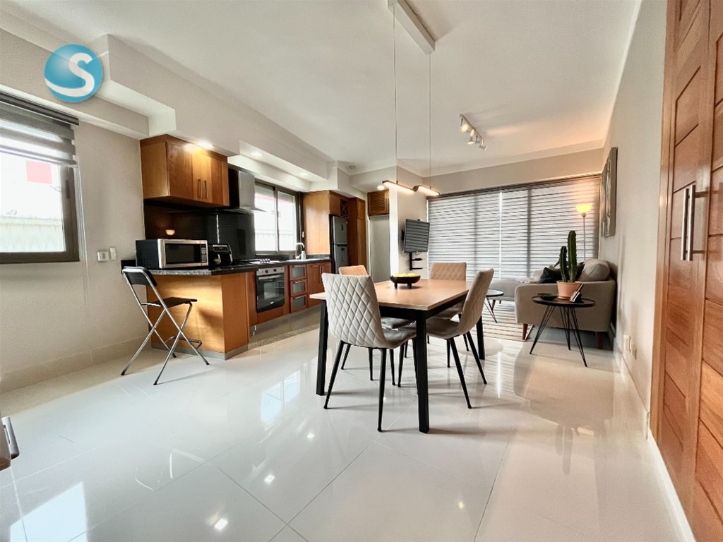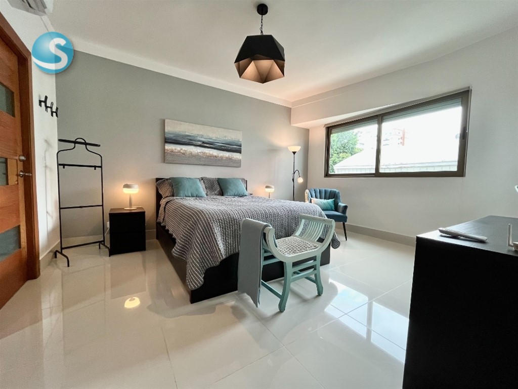 Torre moderna, apartamento amueblado habitación amplia y walk in closet, parqueo techado. Mantenimiento incluido.
