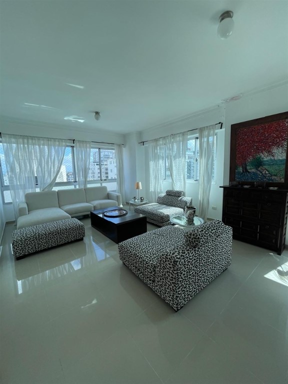 Alquilo apartamento amueblado de 3 habitaciones 180 m2 neto 3 habitaciones Estudio 3.5 banos Sala - comedor Cocina 2 parqueos paralelos Area social con gimnasio, area infantil Precio alquiler: US$1,800 incl mantenimiento ID: EB-UE1437 https://www.tropical-livingdr.com/property/alquilo-apartamento-amueblado-de-3-habitaciones-ensanche-paraiso-santo-domingo-centro-distrito-nacional