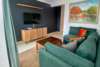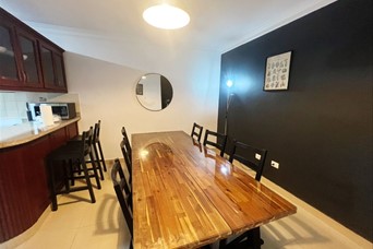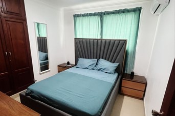 Apartamento Amueblado en Alquiler – Gurabo, Santiago Precio: US$750 mensuales Ubicación: Los Rieles, Gurabo Área: 116 m² | 2do piso Amplio apartamento totalmente amueblado, ideal para hasta 6 personas, ubicado en una zona tranquila y segura. Características: 3 habitaciones Habitación principal con cama King, baño privado y walk-in closet Habitaciones adicionales con camas Queen y Twin 2 baños Sala, comedor y cocina equipada Inversor Parqueo privado Internet incluido Áreas comunes: Piscina Área verde Área social y de juegos Ambiente tranquilo Listo para mudarse