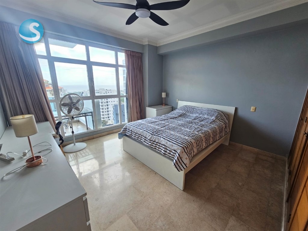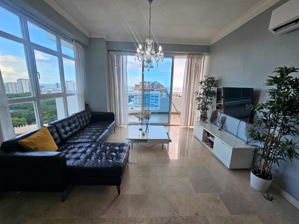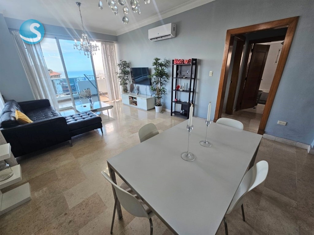 Alquiler apartamento 1 habitación amueblado en Torre la Esperilla con vista 180 grados franca al mar 1 habitación, 1 baño, balcón tipo terraza con vista la mar, sala - comedor, cocina con area de lavado integrada, 1 parqueo techado, nivel 11, pisos en mármol, 3 ascensores, lobby climatizado, preciosa, area de piscina con terraza, gimnasio, salon de actividades, salon de choferes, salon de juegos, mini cancha de football. Precio US$975 incluye mantenimiento. Más información o visitas. Victor Garcia - VIDIVIC Inmobiliaria SRL. Cel. 809-258-6575 whatsapp
