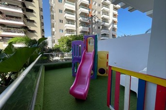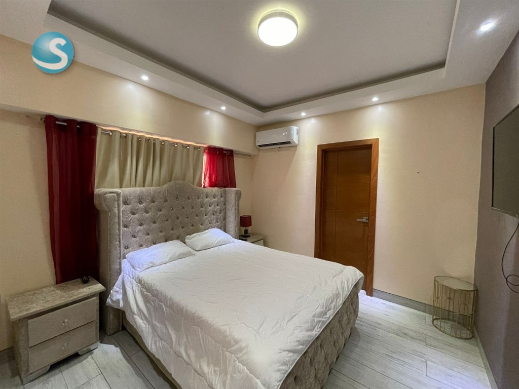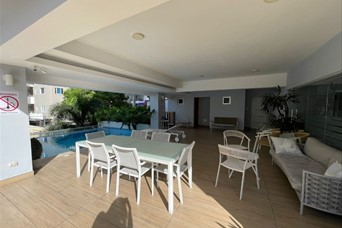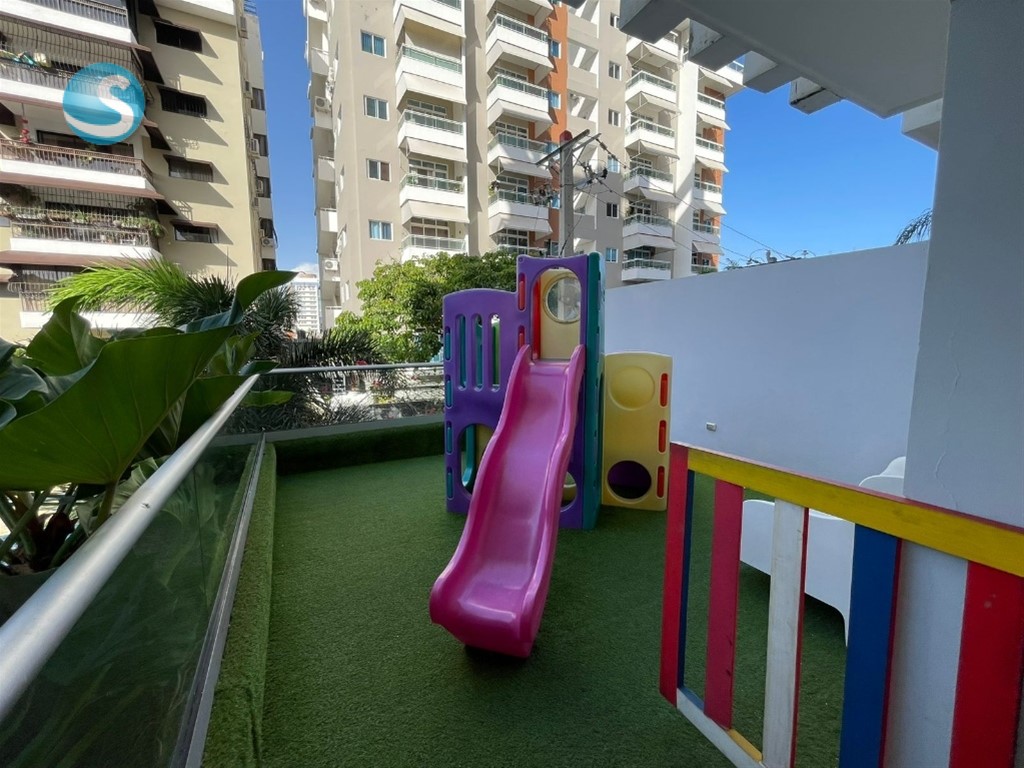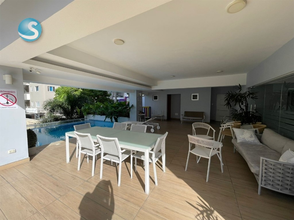 La Julia Amueblado 111 mts 5to nivel 2 habitaciones (principal con W/C) 2.5 baños Balcón Cocina Sala/comedor Area de lavado Cuarto de servicio con baño 2 parqueos lineales Amenidades: 2 ascensores Lobby Gym Area de juegos para niños Piscinas Baños en area social Terraza techada y destechada Planta full Precio de alquiler: US$1,450 Mantenimiento incluido