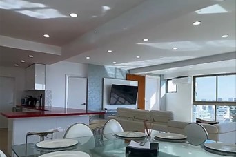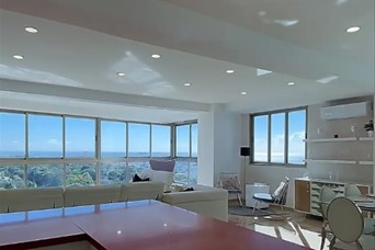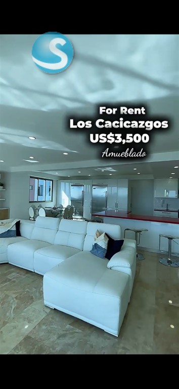 Los Cacicazgos??Preciosa vista al mar? Totalmente amueblado?? ?????????????????????????????? ?????? ?????????????????????? ??3 habitaciones con WC ??3.5 baños ??Sala ??Comedor ??Desayunador ??Cocina ??Área de lavado ??Habitación de servicio ??3 parqueos paralelos y techados ?????????????????????????????? ???? ???? ?????????? ??Portón eléctrico ??3 ascensores ??Planta full ??Área de juegos ??Gimnasio ??Piscina ??Salón Multiuso ??Lobby climatizado ??Terraza común ??Gas común ??Pozo ??Cisterna Precio de renta US$3,500