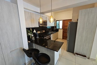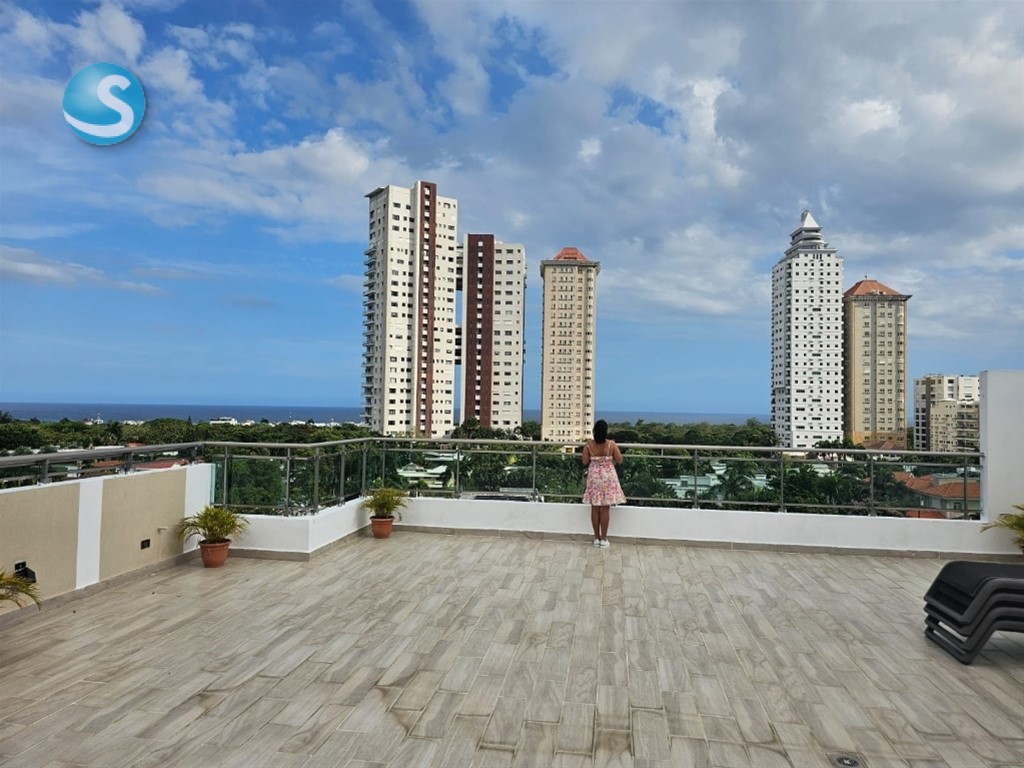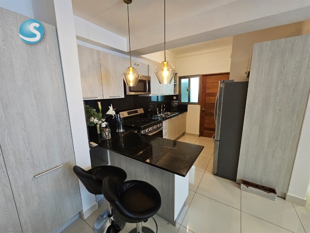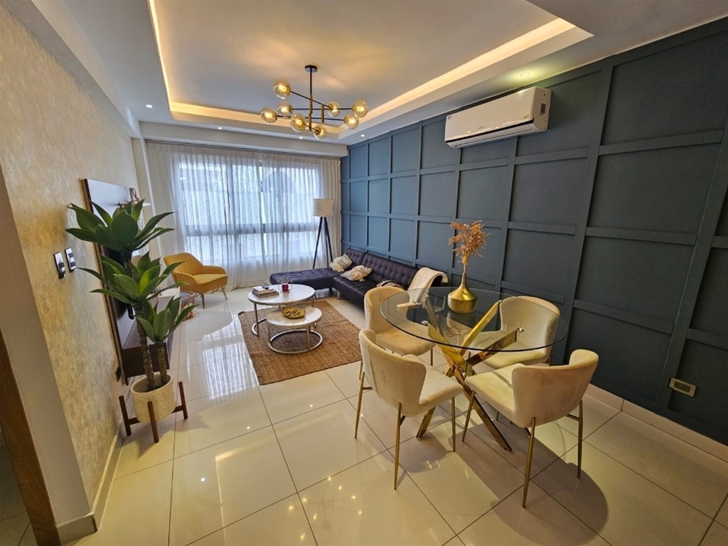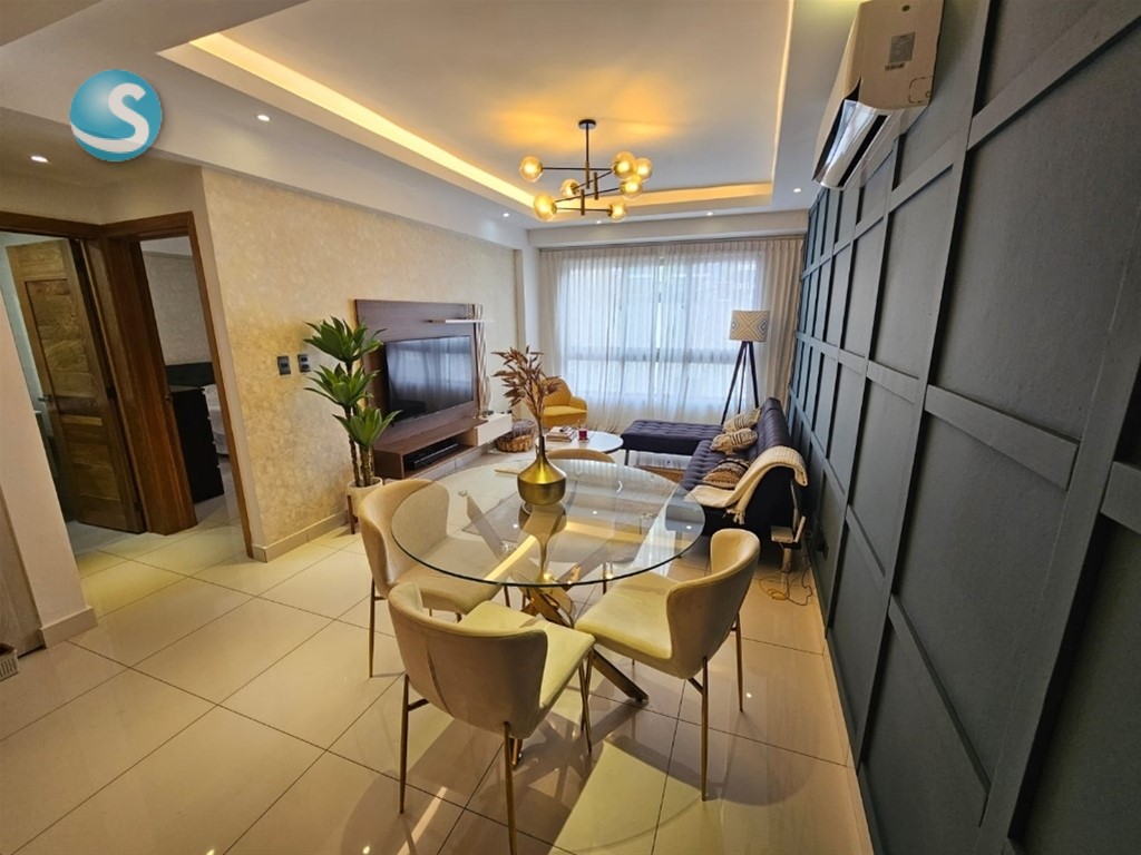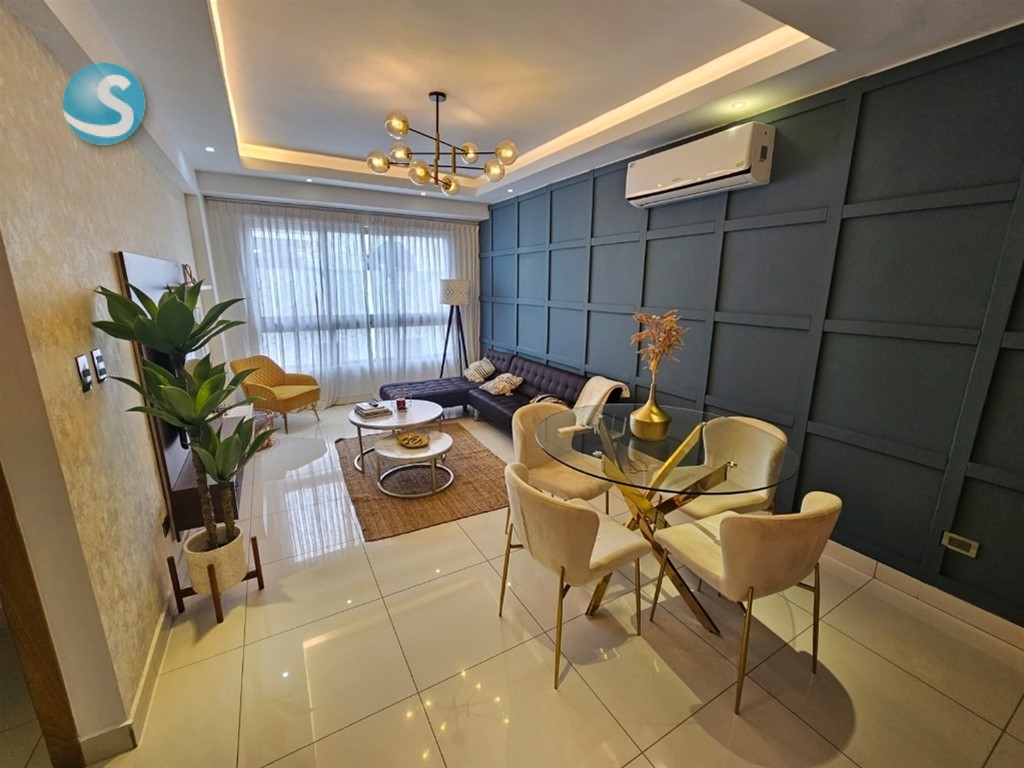 Hermoso apartamento de 1 habitación , sala, comedor, área de lavado, baño de visita, 1 parqueo, ubicado en moderna torre familiar en Los Cacicazgos. Excelente distribución y amueblado para tu disfrute inmediato. La torre cuenta con espectacular terraza con vista al mar, jacuzzi, gimnasio. Céntrico, seguro. Ideal para parejas, ejecutivos, expatriados.