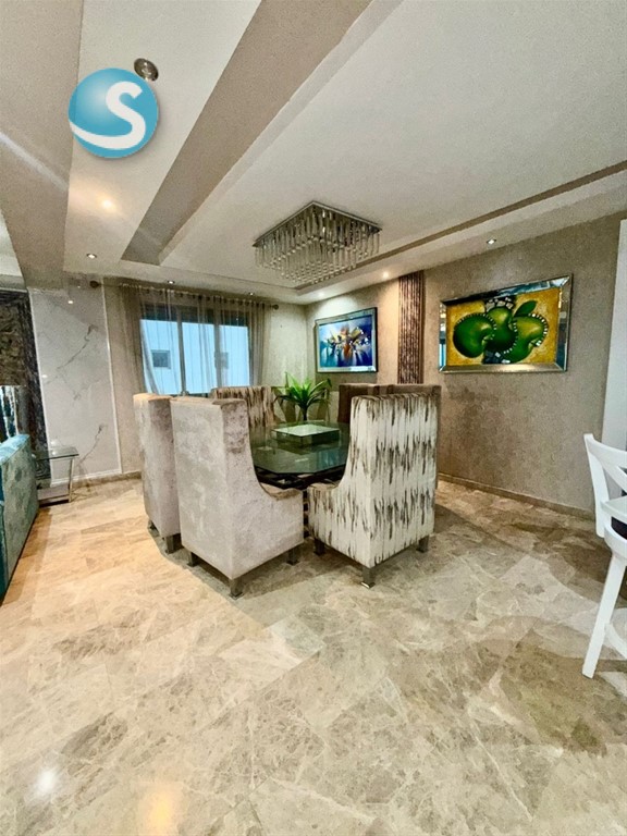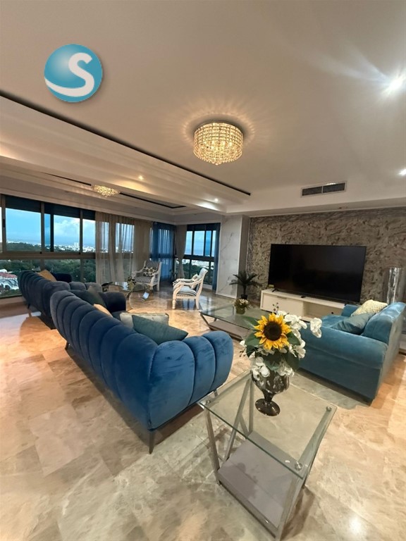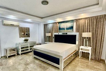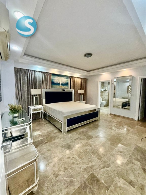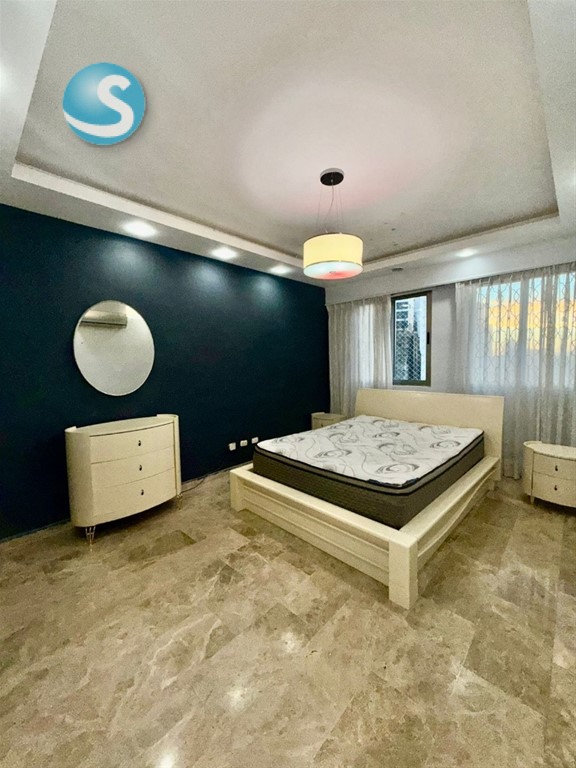 Apartamento en alquiler, piso alto, Mirador Sur. US$3,400 Amueblado US$3,200 Línea Blanca US$3,000 Vacio Características: 270 m² l * Sala amplia con vista panorámica * Comedor elegante * Cocina con desayunador * 3 Habitaciones con baño y vestidor (principal con jacuzzi) * Área de lavado + cuarto de servicio con baño * 4 Parqueos (1 parqueo para vehículo compacto) Locker * Shutters en todas las ventanas * Cerradura inteligente Amenidades de alto nivel: * Piscina, jacuzzi, bar KitchenAid y terraza con BBQ * Gimnasio equipado, sauna y baños M/F * Área infantil * Lobby elegante * 2 plantas eléctricas * 2 ascensores + 1 ascensor de carga