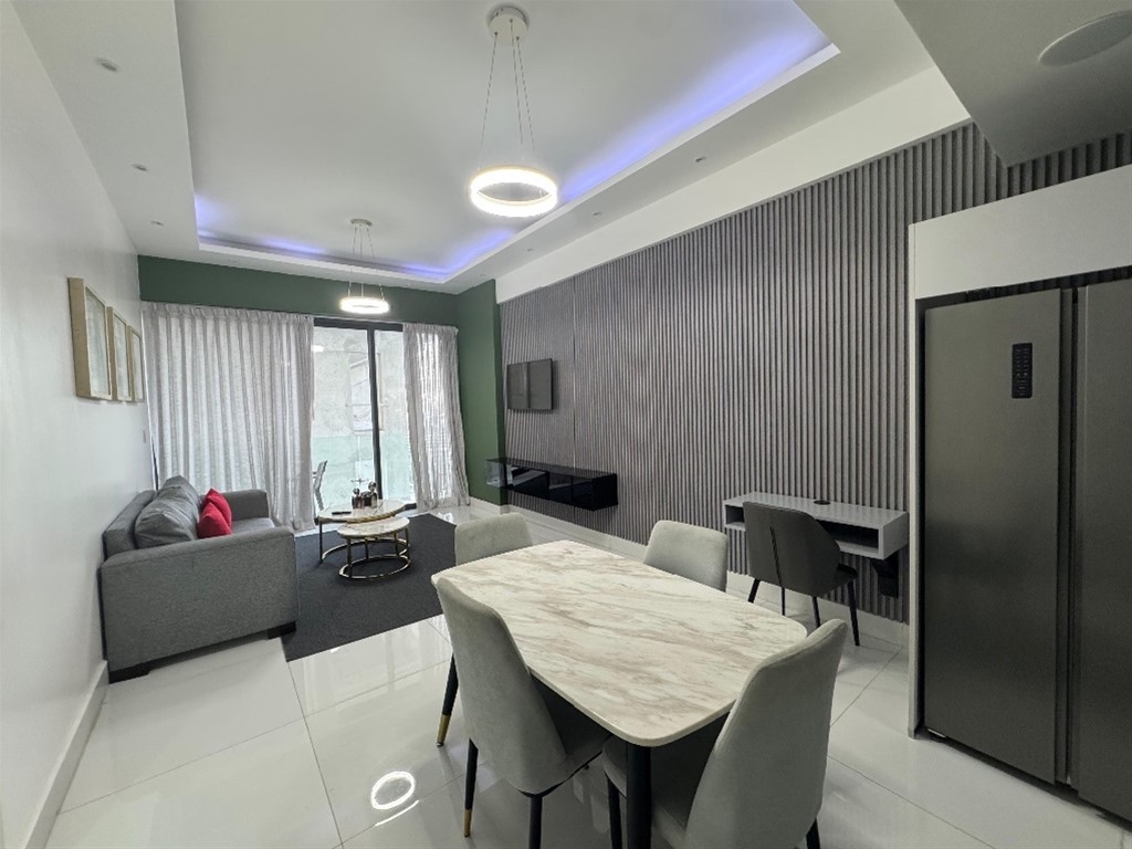 Piantini ?? Amueblado Full Piso 13 70 metros Balcón en sala y habitación 1 habitacion 2 baños Sala Comedor Cocina Área de lavado 1 parqueo Amenidades: Lobby Amueblado y climatizado Piscina de niños Piscina de adultos 4 jacuzzis 4 BBQ Gimnasio Mini market Salon de eventos Sauna Alquiler amueblado US$1,800