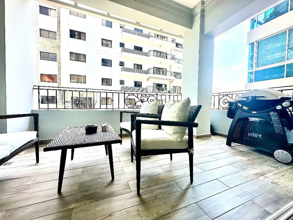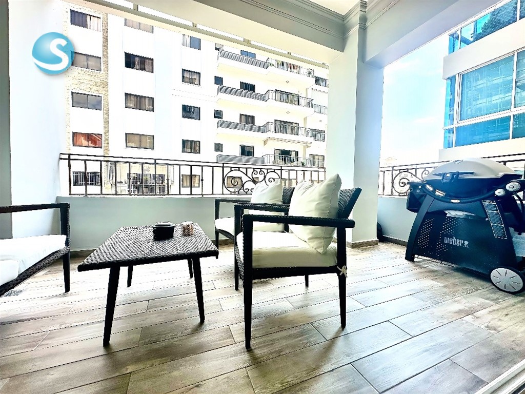 Apartamento amueblado en alquiler en Piantini, Distrito Nacional Vive el equilibrio perfecto entre confort, amplitud y ubicación premium en este apartamento amueblado en alquiler en Piantini, uno de los sectores más exclusivos y demandados del Distrito Nacional, Santo Domingo. Ideal para renta de larga duración, ejecutivos, familias o profesionales que buscan calidad de vida. La propiedad cuenta con 3 habitaciones, incluyendo habitación principal con walk-in closet y baño privado, baño para habitaciones secundarias y medio baño de visitas. Dispone de sala amplia con TV, comedor espacioso, y un balcón tipo terraza con BBQ, perfecto para reuniones y momentos de relajación. Incluye cocina moderna, área de lavado, cuarto de servicio con baño, ascensor con llave, lobby elegante y 2 parqueos, ofreciendo seguridad, privacidad y comodidad total. ?? Precio de alquiler: US$1,750 mensual Incluye mantenimiento ?? Piantini, Distrito Nacional Zona céntrica, segura y de alta demanda para alquiler residencial. ?? Agenda tu visita hoy mismo y asegura tu nuevo hogar en Piantini. Este tipo de apartamentos se alquila rápido por su ubicación y nivel de terminación. ?? Contáctanos ahora y no pierdas esta oportunidad.