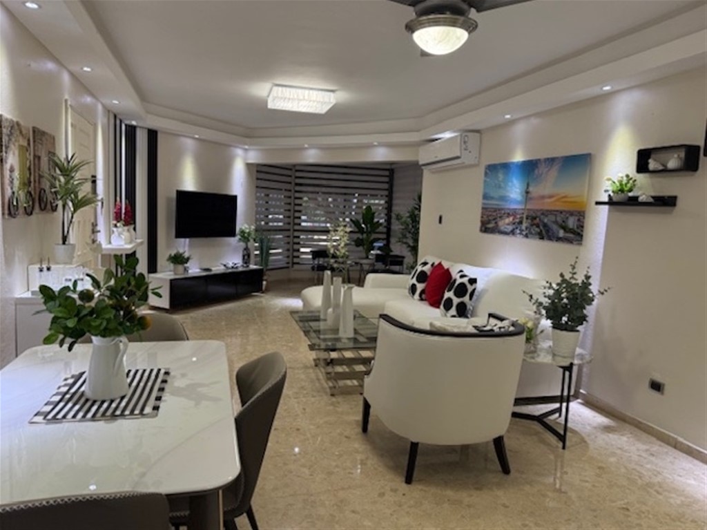 Excelente Apartamento, finamente Amueblado, a solo Pasos de Blue Mall. Ubicado en el mismo centro de la ciudad; Polígono Central, cerca de Plazas Comerciales, Centros Financieros, Super Mercados, Colegios y Línea de Transporte. Apto clásico y Amueblado de calidad, en el 1er nivel; con Balcón integrado, sala, comedor, cocina amplia, 3 dormitorios, 2 baños, servicio, 1 Parqueo y Planta Full. Excelente para extranjeros. Precio: US$1,800. mant, incl. Por citas. Pilar Díaz. 809-756-2755 Remax Plus.
