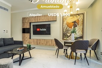 Piantini Amueblado en Piantini Piso 4 Metros 60 Una habitación con su baño y Walking Closet Sala Medio baño Comedor Cocina Balcón Amplio Área de lavado equipado Planta full Seguridad 24/ horas 2- Ascensores Piscina Gimnasio Terraza Bar