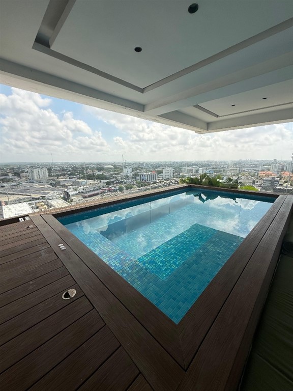 Alquilo Apartamento Nuevo a estrenarse en la zona de Serralles -piso 13 -64.17 metros -Una habitación con baño y working clóset -Un baño completo -Sala -Comedor -Cocina con desayunador -Balcón -Un Parqueo Techado Anmedidades de la torre: -Lobby climatizado -Piscina Infitini -Terraza Techada y amueblada -Salón de Eventos -Gym -Área de Niños -Planta Full -Seguridad las 24horas Precio: US$1,150 (Incluyendo mantenimiento)
