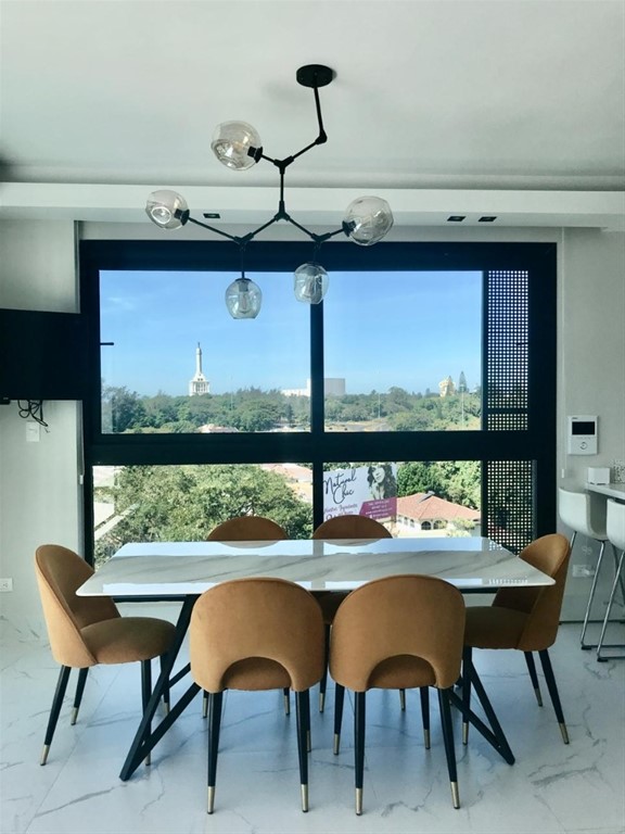 Apartamento Amueblado en Alquiler Largo Plazo en Reparto Universitario Santiago con Vista al Monumento | 2 Habitaciones | Torre con Rooftop y Gimnasio Disponible exclusivamente para alquiler a largo plazo, este elegante apartamento amueblado se encuentra ubicado en piso alto en el sector Reparto Universitario, una de las zonas residenciales más prácticas y bien conectadas de la ciudad. La propiedad ofrece una vista panorámica privilegiada de la ciudad, destacando una visual directa hacia el emblemático Monumento a los Héroes de la Restauración, uno de los íconos más representativos de Santiago. Esta característica aporta un valor especial a la experiencia de vivir en la propiedad, tanto de día como de noche. El apartamento cuenta con una distribución funcional que combina comodidad y eficiencia en cada espacio. Dispone de dos habitaciones, cada una con su baño privado, incluyendo una habitación principal con walk-in closet. Además, la unidad incorpora medio baño para visitas, permitiendo mayor privacidad en el área social. La zona social integra sala y comedor climatizado, con acceso directo a un balcón privado desde donde se pueden apreciar las vistas abiertas de la ciudad y del Monumento. La cocina se encuentra completamente equipada con electrodomésticos, y la propiedad incluye lavadora y secadora, lo que permite una ocupación inmediata y una vida práctica desde el primer día. Características del apartamento Piso alto Vistas panorámicas de la ciudad Vista directa al Monumento de Santiago 2 habitaciones con baño privado Habitación principal con walk-in closet Medio baño para visitas Sala Comedor climatizado Balcón Cocina equipada con electrodomésticos Lavadora y secadora Aires acondicionados 1 parqueo Amenidades de la torre Lobby climatizado Gimnasio equipado Rooftop con terraza abierta tipo lounge Área climatizada con pantalla para reuniones o entretenimiento Área de lavandería común Parqueo soterrado Seguridad 24 horas Acceso controlado Esta propiedad representa una excelente opción para ejecutivos, profesionales o parejas que buscan un apartamento amueblado, bien ubicado y con vistas privilegiadas en Santiago. Disponible únicamente para alquiler a largo plazo.