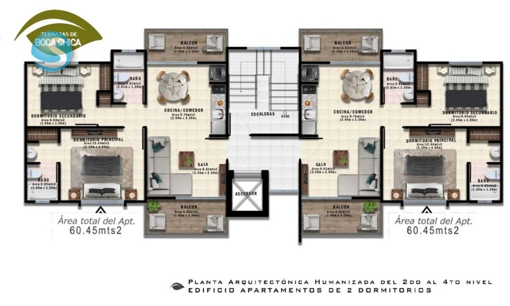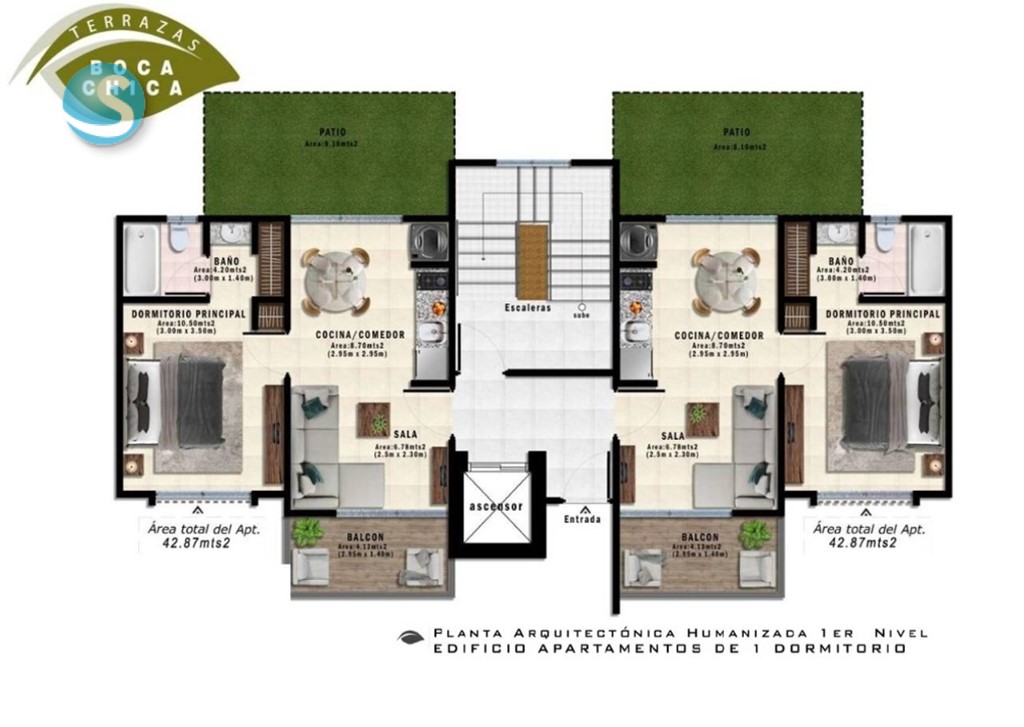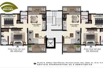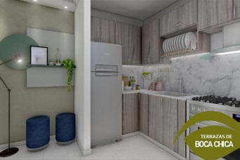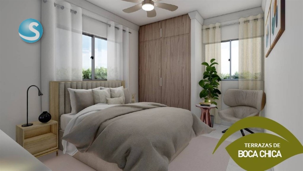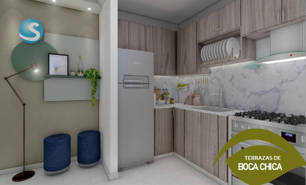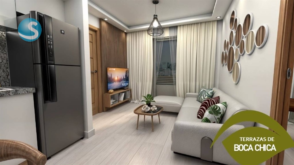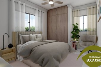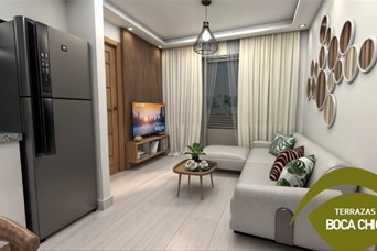 Terrazas de Boca Chica es un proyecto residencial de apartamentos ubicados a solo 3 minutos de la playa, compuesto por 40 edificios de apartamentos de 5 niveles con ascensores, una moderna y atractiva fachada y áreas verdes en todo el residencial, con apartamentos de 1 y 2 dormitorios. Situado en el corazón de las academias de béisbol Grandes Ligas, permite inspirar en un ambiente familiar y deportivo a tan solo 5 minutos de la playa más hermosa del litoral sur la Gema de Boca Chica. Los edificios están concebidos para desarrollarse en manzanas en el que cada una contará con áreas de piscinas y recreación independiente para mayor confort y tranquilidad de los residentes. Los parqueos están orientados hacia la parte posterior de las edificaciones creando así un ambiente limpio y de mayor visibilidad al área de recreativa, generando un mejor disfrute de las amenidades que ofrece el proyecto. Es un proyecto a desarrollarse bajo un Fideicomiso con la FiduAPAP, garantizando así el dinero de los clientes. Entre las áreas que componen el proyecto están: *Manzanas con edificios de apartamentos *Plaza Comercial *Área de piscinas *Parque y áreas verdes *Garita de acceso vehicular y peatonal Contará con un descuento especial en el restaurant St. Tropez, siendo este uno de los mas exclusivos de la playa de Boca Chica en cual podrá tener acceso privilegiado y en el cuál tendrá un acceso mas exclusivo a la playa. Desde US$62,500 Inicial 40% Separación 10% Completivo del 30% en 24 meses. Reserva solo con US$500.00