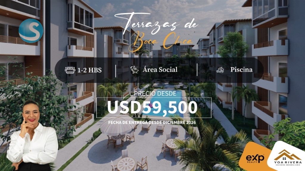 ??? Terrazas de Boca Chica – Tu paraíso cerca de todo ??? . ¿Buscas una inversión segura o tu lugar soñado en el Caribe? ?? Bienvenido a Terrazas de Boca Chica, un proyecto único a solo 5 minutos de la playa de Boca Chica y rodeado de las mejores atracciones de República Dominicana. . ??Apartamentos de 1 y 2 habitaciones ?? . ?? Ubicación estratégica: • 5 min de la playa de Boca Chica ??? • 10 min del Aeropuerto Las Américas ?? • 15 min de Juan Dolio ?? • 20 min de Santo Domingo ??? • 1 hora de Punta Cana ?? . ??Precios de venta desde USD$59,500.00 • Separación de la unidad USD$ 1,000. • Gastos legales USD 300. • Inicial 10% con la firma del contrato. • Completivo del 30% en cuotas según la etapa elegida entre 18 meses o 30 meses. • 60% con la entrega del proyecto. . ? Además, ¡rodeado de complejos de Grandes Ligas! Frente a los Mets de New York, cerca de los Marlins de Florida, Angels de Anaheim y Rangers de Texas. . ?? Beneficios exclusivos para propietarios: • ?? Club de playa asociado con 15% de descuento en restaurantes frente al mar ?? • ?? Privacidad, confort y cercanía a lo mejor del Caribe ?? • ?? Invierte hoy en un proyecto diseñado para la comodidad, rentabilidad y estilo de vida que mereces. . ?? ¡Contáctanos para más detalles o para agendar una visita! ?? Yohanna Rivera Guerrero - Asesora Inmobiliaria ?? Tel: 809-884-7676 ?? Correo: [email protected]