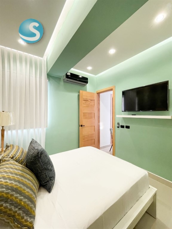 Alquilo en Torre con Piscina Apartamento Amueblado de 2 Habitaciones en Boca Chica con Vista a la Playa CODIGO: PD465 -2 Habitaciones -60 Metros Netos -Piso 7 -1 Baño -1 Parqueo -Sala/Comedor -Cocina Con Desayunador -Balcón -Gym -Piscina -Ascensor -Seguridad 24/7 -Planta Full Precio de Alquiler: US$1,200.00