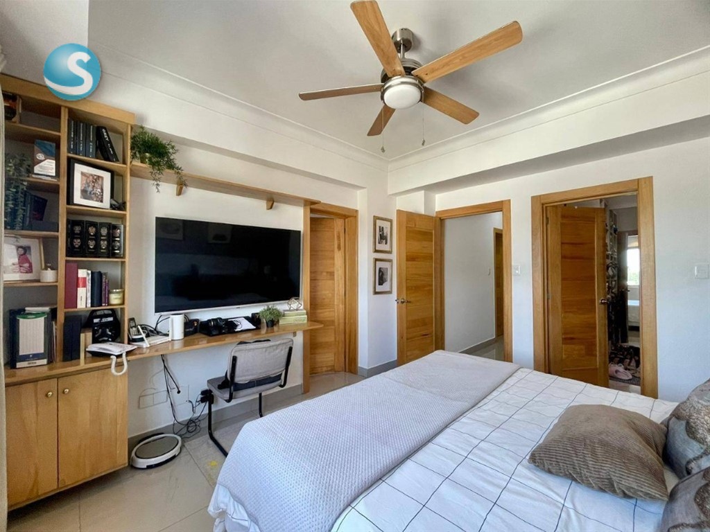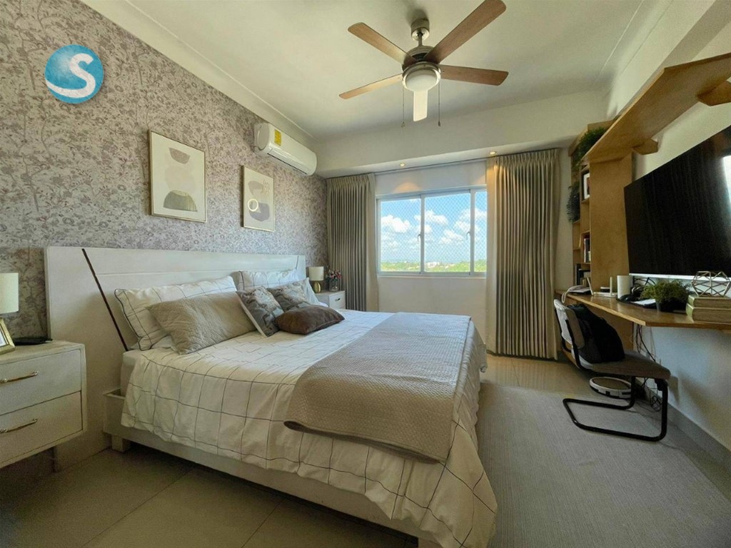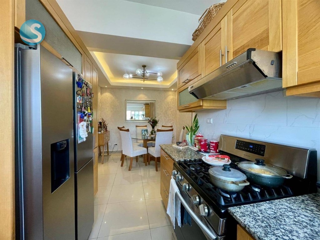 VENTA DE OPORTUNIDAD – ARROYO HONDO II Características 160 mts 3 habitaciones ( principal con walk in clóset y baño ) 2 baños completos Medio baño de visita Sala, comedor y cocina Balcón Cuarto de servicio con baño Área de lavado 2 parqueos paralelos Características de Torre Torre familiar Gas común Terraza común Ascensor Planta eléctrica full Picuzzi Lobby amueblado climatizado Cámaras de seguridad Gimnasio Área de niños Seguridad 24/7 Mantenimiento: RD9,000 Precio: US 235,000 ARI. E. y EMM. B