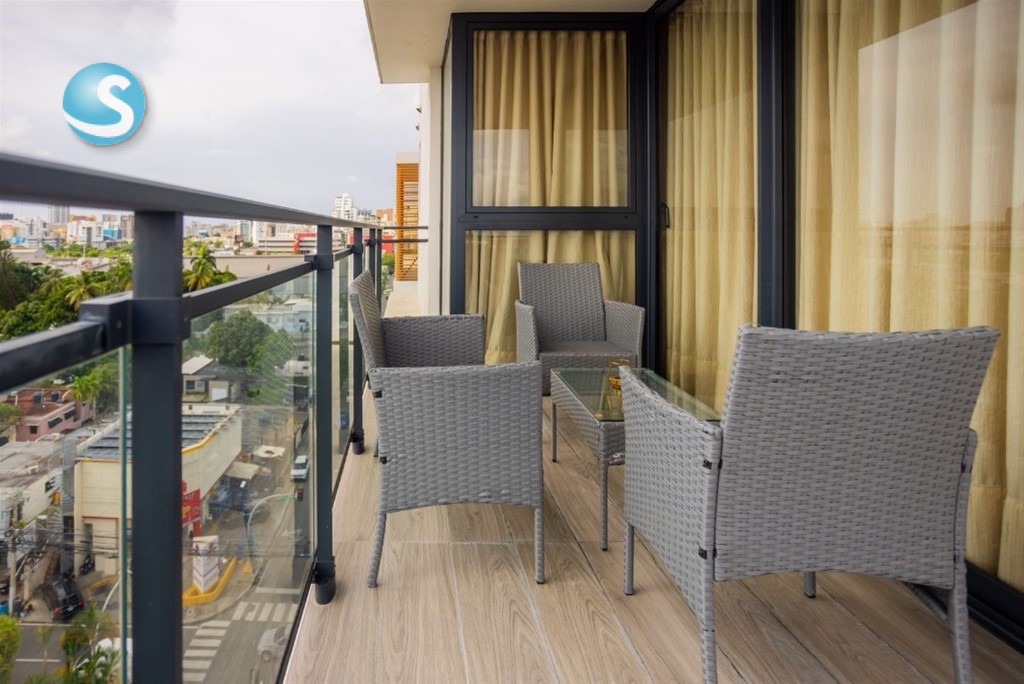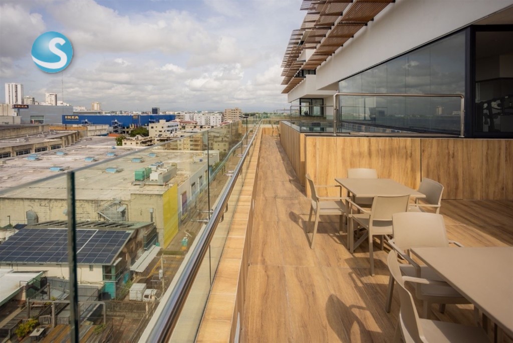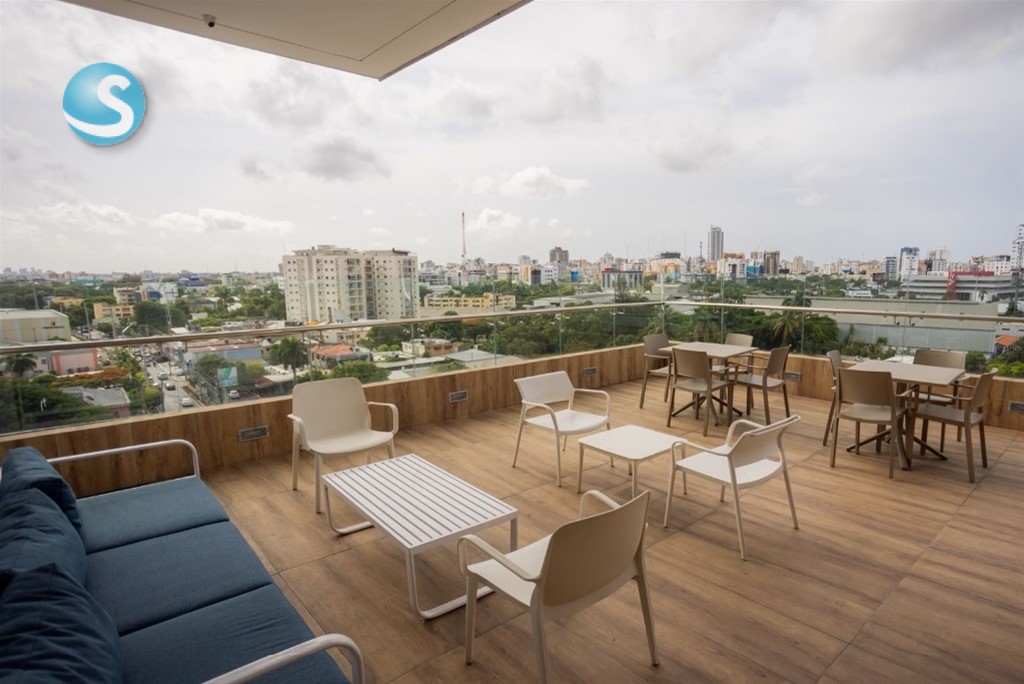 Apartamento amueblado 8vo piso en la Torre más moderna de Arroyo Hondo Viejo. Tiene vista panoramica de la ciudad desde cada dormitorio, sala-comedor-cocina. - 2 Dormitorios con aire acondicionado y balcones. - 2 do Baño con doble acceso : Acceso directo a la hab secundaria y hacia el pasillo. - Sala / comedor integrado. - Cocina abierta y equipada con Horno y estufa empotrada, extractor y Nevera doble puerta . - Habitación de servicio con su baño. - Mantenimiento Incluido con planta full, gas común y agua. - 120 metros de construcción - 2 Parqueos . - Área social con piscina, gym y área de niños. - Amueblado. Precio US$1,800 usd mantenimento includo .