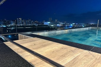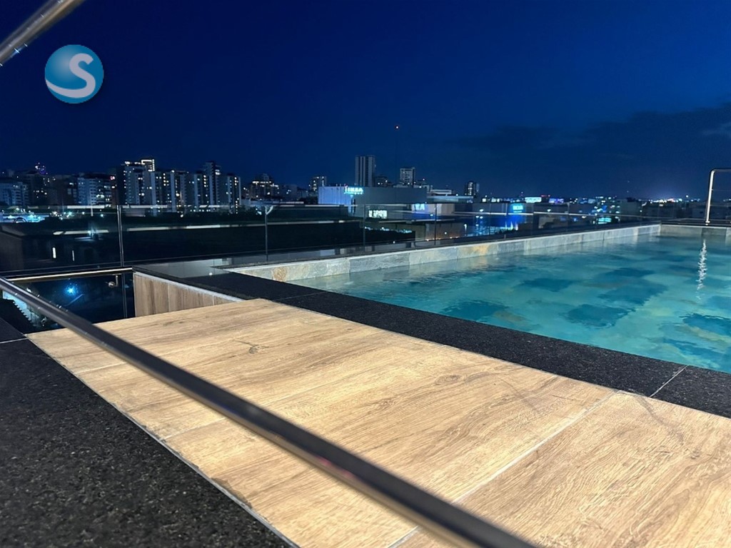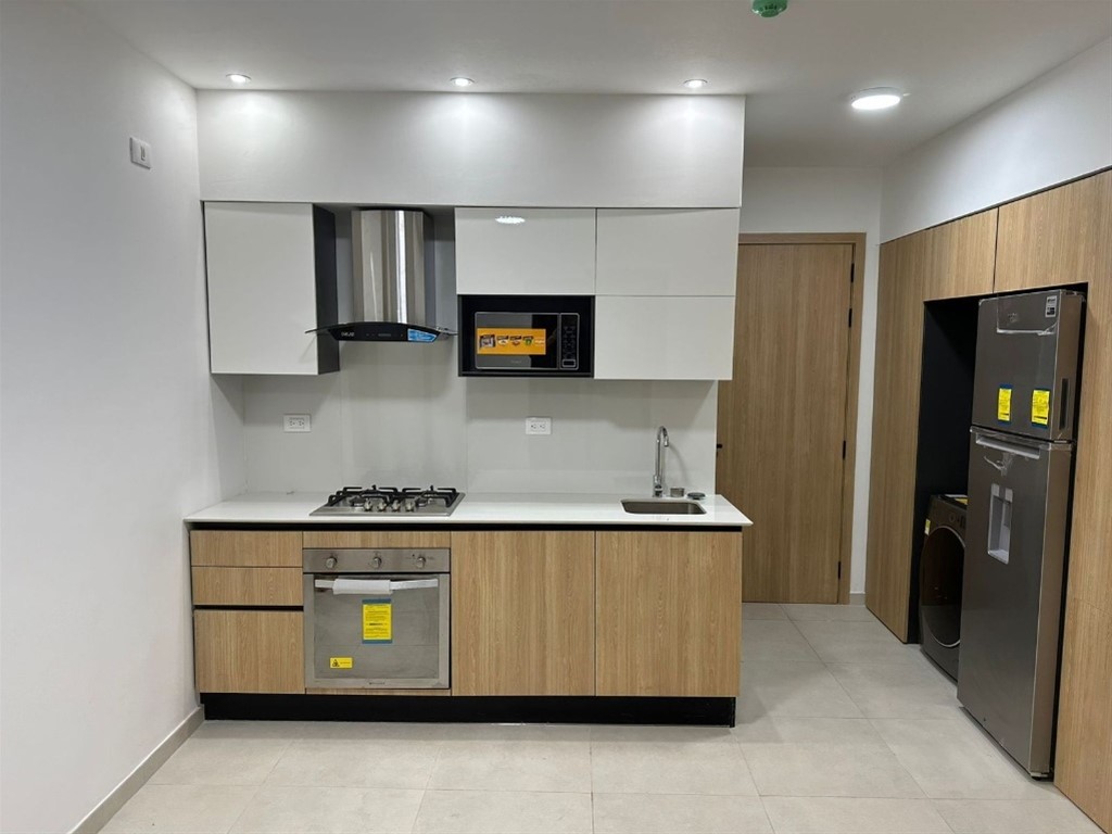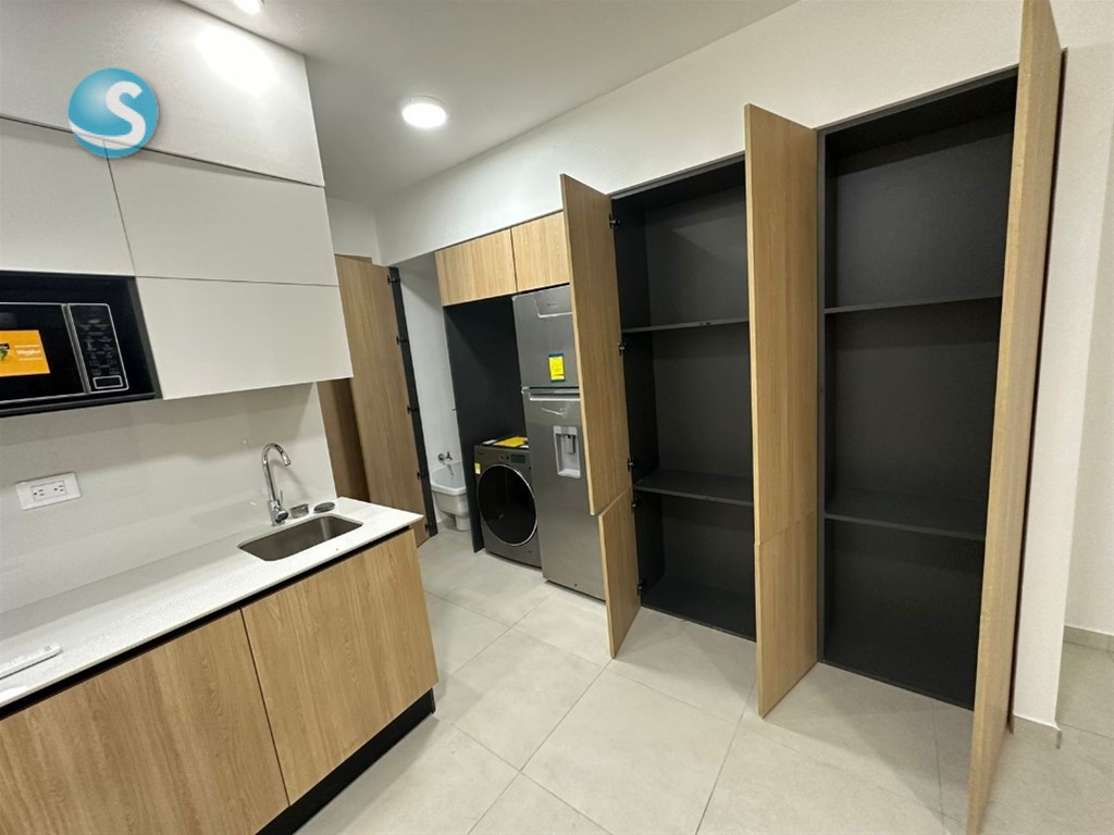 Torre Residencial Moderna Apartamento de 1 habitación con su baño y espacio para clóset. Amplio balcón con acceso desde la sala y la habitación. Cocina equipada con nevera y lavadora/secadora. ½ baño para visitas. Amenidades y áreas comunes: Piscina Gimnasio 2 terrazas exteriores con kitchenette y baño (en el piso 8) Lobby amplio con área de seguridad y cámaras en todas las zonas Parqueos soterrados + parqueos para visitas Área infantil Áreas comunes con accesibilidad