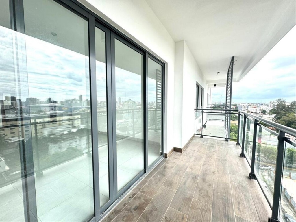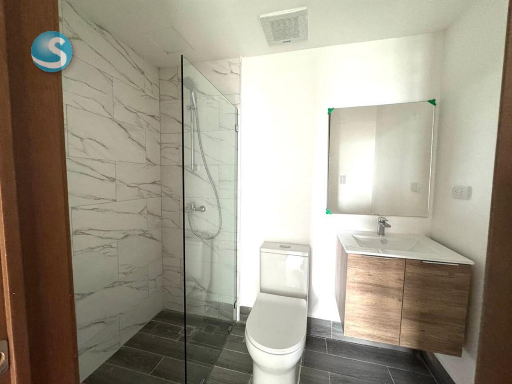 Moderno apartamento en alquiler en Arroyo Hondo Viejo Piso 9 125 mts 2 habitaciones 2.5 baños Sala Comedor Cocina Closet de ropa blanca Habitación de servicio 2 parqueos paralelos y techados Escalera de emergencia Amenidades y características de la torre Portón eléctrico Ascensor Luz 24 hrs Cámaras de seguridad Planta full Gimnasio Área de juegos 2 picuzzis Lobby climatizado Terraza común Gas común Cisterna Precio de alquiler US$1,400 GEOR. G.