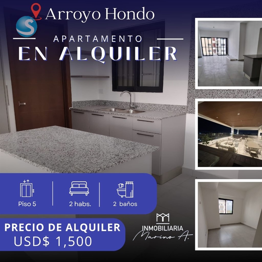 Apartamento en Alquiler – Arroyo Hondo Piso 5 | USD$1,500 mensual Vive con estilo y confort en este elegante apartamento ubicado en una zona tranquila y estratégica de Santo Domingo. 2 habitaciones 2 baños Cocina Sala y comedor con excelente iluminación Área de lavado Amenidades del edificio: Gimnasio totalmente equipado. Área infantil Torre con ascensor Jacuzzi Ideal para quienes buscan comodidad, ubicación y una excelente calidad de vida. Contáctanos para más información o agendar tu visita.