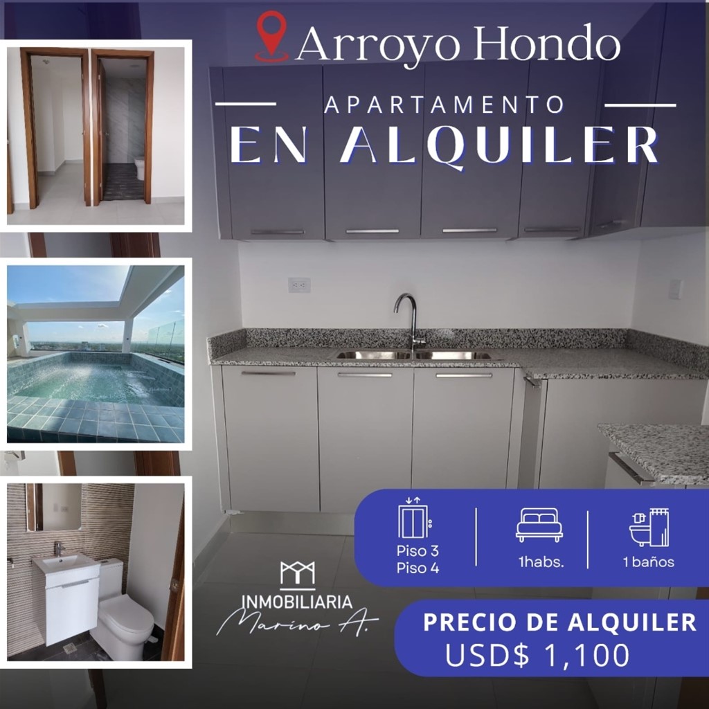 ?? Apartamento en Alquiler – Arroyo Hondo ?? Piso 3 y Piso 6 | USD$1,100 mensual Vive con estilo y confort en este elegante apartamento ubicado en una zona tranquila y estratégica de Santo Domingo. 1 habitaciones 1 baños Cocina Sala y comedor con excelente iluminación Área de lavado Amenidades del edificio: Gimnasio totalmente equipado. Área infantil Torre con ascensor Jacuzzi Ideal para quienes buscan comodidad, ubicación y una excelente calidad de vida. ?? Contáctanos para más información o agendar tu visita.