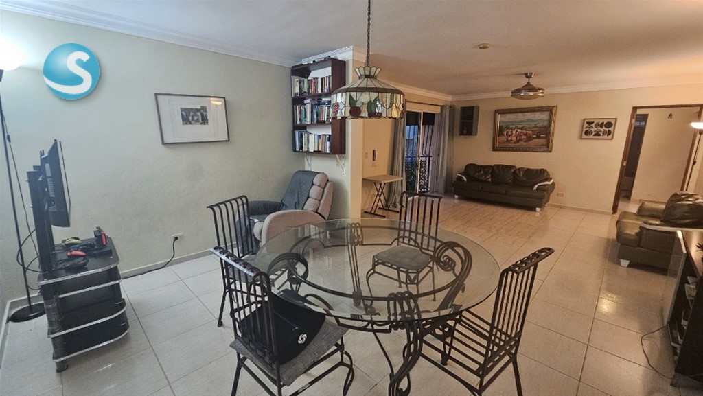Apartamento en arroyo hondo, próximo al Nacional Antes: RD$8,800,000.00 Ahora: RD$8,300,000.00 Mantenimiento: RD$ 5,000.00 146m2 3er nivel 3 habitaciones 2 baños Sala comedor Cocina Area de lavado Habitación de servicio con su baño Sala comedor Cocina 2 parqueos Gas individual Seguridad 24/7 Intecom Cisterna