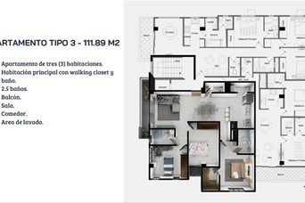 Para Agosto 2026 Proyecto moderno, diseño vanguardista ??Atala Tercer nivel 111m2 3 habitaciones 2 baños Baño de visitas Cocina con tope de granito Sala comedor Área de lavado Balcón 2 parqueos ?Amenidades Lobby Ascensor Cámaras de seguridad Planta eléctrica Portón eléctrico Acceso token electrónico ? Generales Techos en yeso Cocinas modulares importadas Ebanistería en roble Pisos en porcelanto Grifería moderna Revestimientos de baño vanguardista Gas común Pozo tubular Protección contra incendios ? Plan de pago Reserva US$1,000 Separación 10% Inicial en cuotas 40% Contraentrega 50%