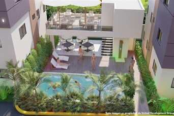 MLS 25-1177 Explora este nuevo proyecto residencial ubicado a solo 20 minutos del Aeropuerto Internacional de Las Américas en la República Dominicana, en una de las zonas de mayor desarrollo del país. Este desarrollo se extiende a través de 6 edificios de 4 niveles cada uno, ofreciendo apartamentos diseñados para maximizar el confort y la funcionalidad. Características del apartamento: - Habitación Principal: Con baño y closet incorporado. - Habitaciones Secundarias: 2 habitaciones adicionales, cada una con su propio closet. - Baños: Total de 2 baños completos. - Sala - Comedor - Cocina - Balcón - Área de Lavado Amenidades del proyecto: - Áreas Verdes - Piscina - Área de Eventos - Seguridad: Portón eléctrico y parqueo cerrado. Plan de Pago: - Reserva: USD 500 - Inicial: 10% - Durante la Construcción: 15% - Contra Entrega: 75% - Fecha de Entrega: Marzo 2027 Disponibilidad: Apartamentos disponibles en los 6 edificios, asegurando múltiples opciones para potenciales compradores. Este proyecto no solo ofrece una ubicación privilegiada cerca de infraestructuras clave sino también un ambiente seguro y tranquilo, ideal para quienes buscan integrar la vida urbana con comodidad y estilo. Oficina