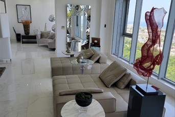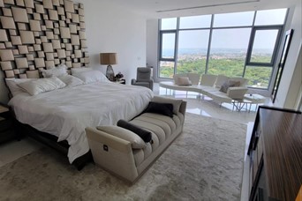 Apartamento de lujo en torre anacaona Santo Domingo. Con vista al mar 3 habitaciones 4.5 baños,4 paqueos Venta:2,500,000 PISO Alto 598m2 netos. Area Social: -Lobby. - Gran salon de fiesta con capacidad de 300 personas. - Cine profesional con capacidad de 25 personas con bar privado. - Baños de visitas. - Gym totalmente equipado con maquinas de ultimas generación. - Piscina infinity pool. - Cancha de Basketball. - Spa de relajación y meditación. - Sauna. - Sala de masaje seco y de lodo, - Salon de belleza. DISTRIBUCCION DE APARTAMENTO: - Estar familiar. - Baño visita. - Oficina. - Dormitorio principal, gym, masaje, sala de baño. - 3 dormitorios con sus baños y W.Closet - Cocina caliente, lavanderia y servicio. - Estar de servicio. -2 Dormitorios de servicios con su baño y closets. - Ducto de basura en area comun. Cuarto tecnico independiente en el area comun. - Terraza. - Sala estudio. - Comedor formal. - Cocina fria.