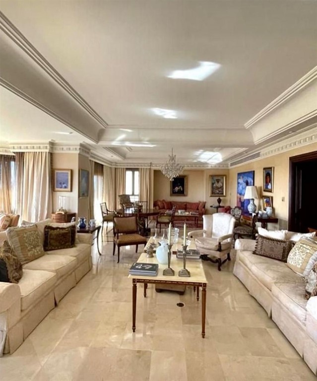 Apartamento con finas terminaciones 563 mts2 3 habitaciones con WC 3.5 baños Lobby con entrada independiente Family room Comedor Salas (3) Cocina Área de lavado Cuarto servicio Elegante 2 elevadores 1 elevador de servicio 3 parqueos Parqueos visitas Áreas sociales: Amplio Lobby climatizado Parque infantil al aire libre Salón multiusos Gimnasio Piscina Jacuzzi BBQ Tenis