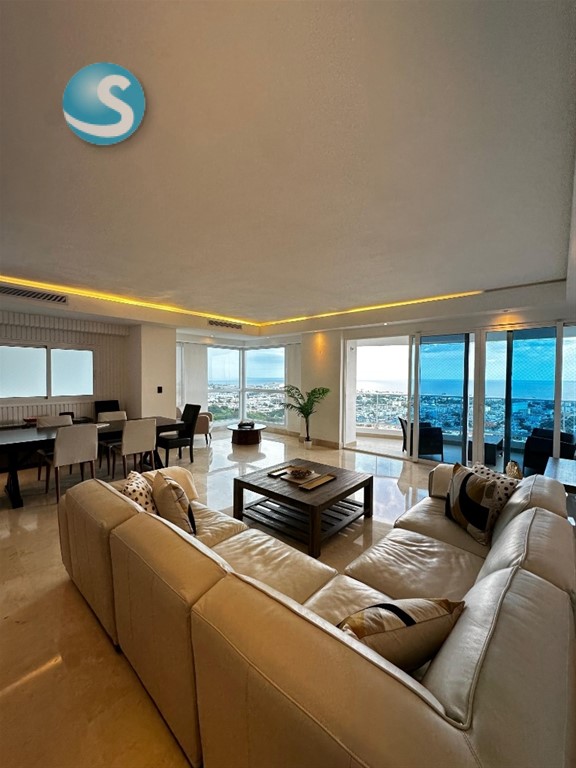 Agente: Yosmary Arcia Contacto: 829-859-4753 Propiedad: Apartamento Sector: Anacaona Parqueo: 4 Metraje: 214 mts2 Precio de Venta: US$710,000 Disfrute lo exclusivo. El Apartamento viene equipado con un sistema de aire acondicionado independiente en todas las áreas. La moderna cocina Italiana está totalmente equipada con nevera-congelador, microondas, horno, lavadora y secadora, El lujoso complejo cuenta además con Piscina, Restaurante, Minimarket, Salon de belleza y Lavandería. Piso Alto / Vista al Mar / Zona Centrica / Amueblado Características del Apartamento: * 3 Habitaciones con baño y Walking Closet * 3.5 Baños * Sala * Cocina * Comedor * Balcón * Estudio * 1 Locker * 4 Parqueos * 3 Ascensores * Cuarto de Servicio Completo Características de la Torre: * Acogedor Lobby climatizado * Piscina * Gazebo * Salón de chóferes * Gyms Amplio * Cisterna * Agua potable * Control de acceso * Seguridad 24/7 * Planta eléctrica * Salón de reuniones * Sistema de gas centralizado * Portones eléctricos