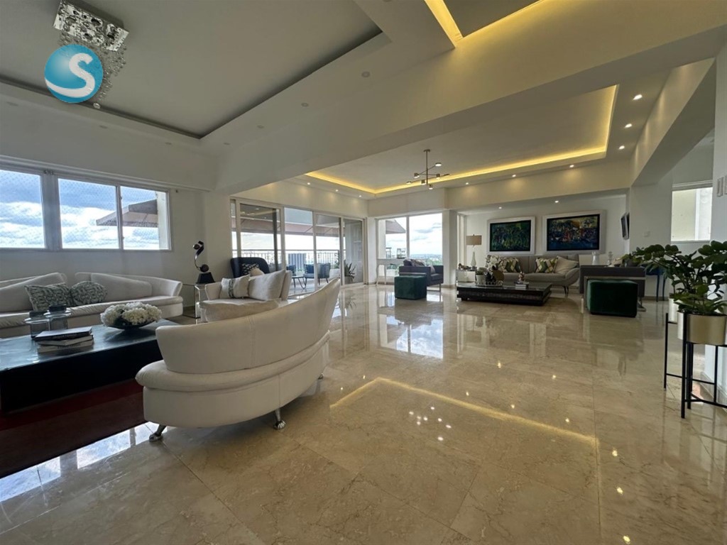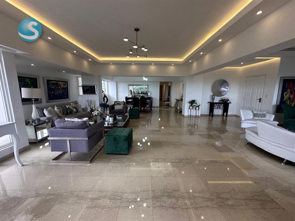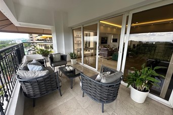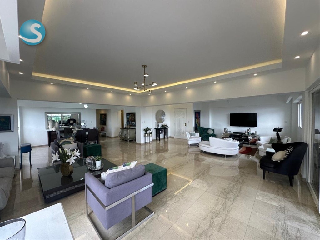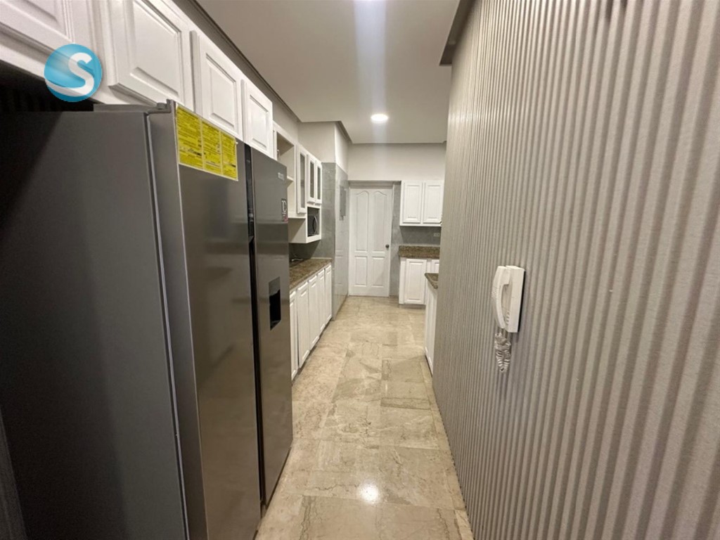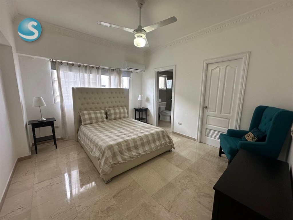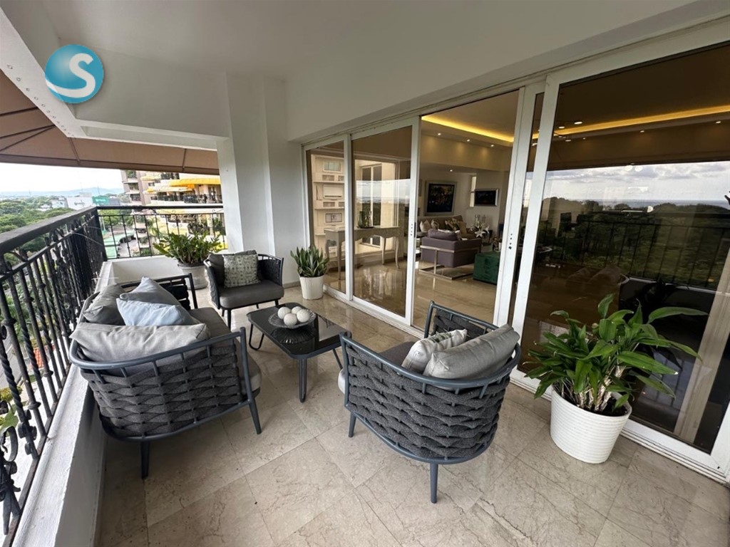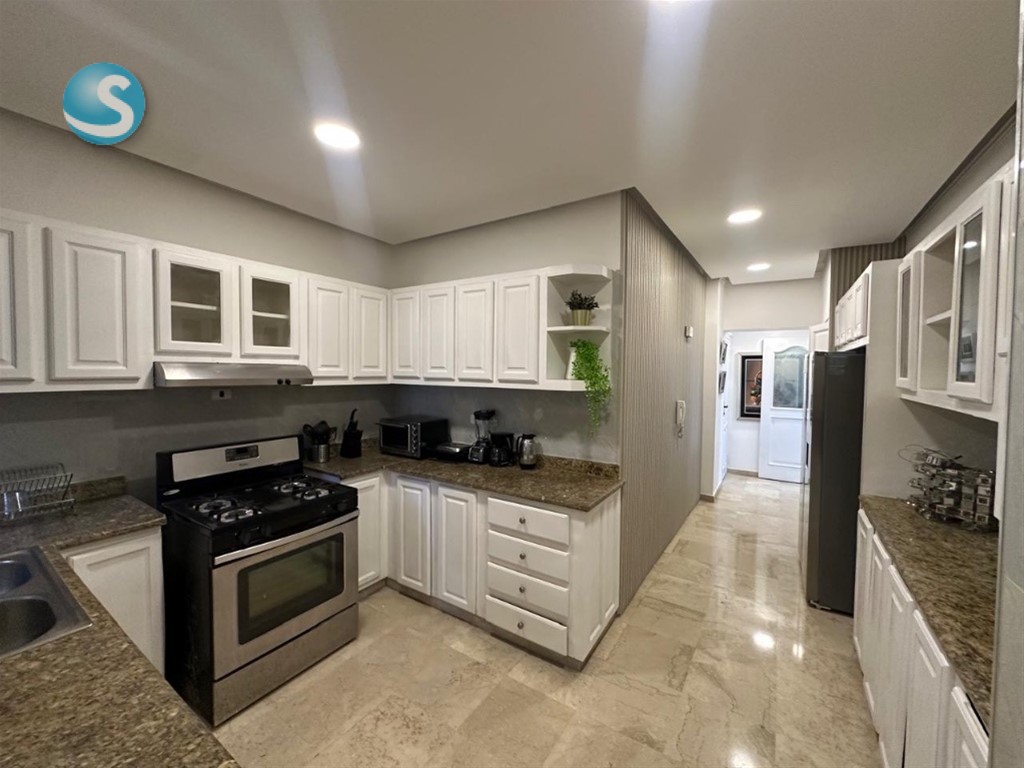Av Anacaona ( Alquiler Amueblado) 320mts de construcción 3 Habitaciones 3.5 Baños Recibidor Sala Comedor Balcón Cocina Área de lavado Cuarto de servicio con baño 2 Ascensores Planta full 2 Parqueos Lobby Precio US$3,000 Mantenimiento incluido