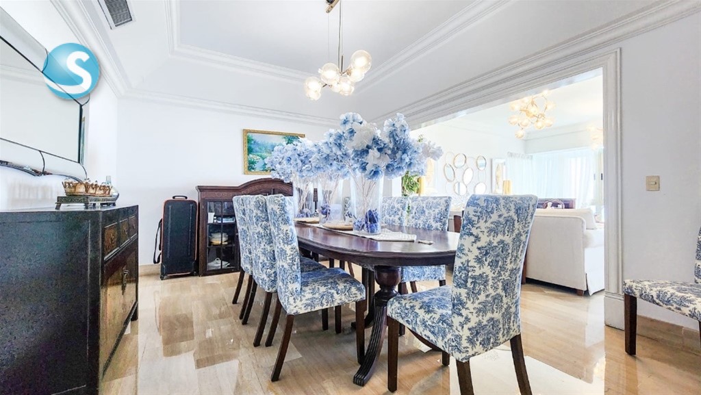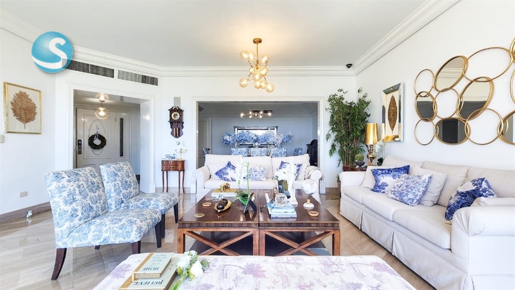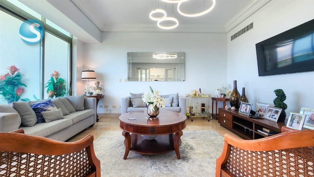 ———————————————————————— DESCRIPCIÓN: ———————————————————————— Tipo: Apartamento Sector: Anacaona Habitaciones: 4 con baño y walking closet Baños: 4.5 Jacuzzi en habitación principal 447mt2 de construcción Estudio Estar Familiar Salas Balcón Comedor Cocina Fría Cocinas Calientes Habitación de servicio Área de lavado Aires acondicionados ———————————————————————— GENERALES: ———————————————————————— Proyecto con seguridad privada 24 horas Cámaras de seguridad Control de acceso 2 Ascensores Ascensor de Servicio Portones eléctricos Lobby de lujo climatizado Planta eléctrica Terminación en madera preciosa Pisos en mármol 3 Parqueos vehículos techados Gimnasio Piscina Salon Multiuso ———————————————————————— PRECIO VENTA: $750,000