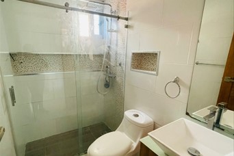 Apartamento en alquiler, ubicado en la Av. Independencia sector Costa caribe. 2do Piso con amplia terraza, techada y destechada 2 habitaciones, principal con baño y walking closet 1 baños común 1 parqueo Sala-comedor-cocina Cuarto estudio Cuarto de servicio con su baño Precio de alquiler RD$50,000 Mant incl.