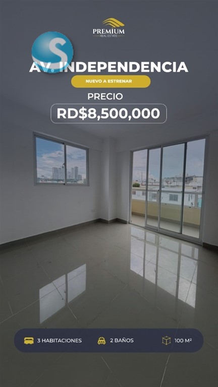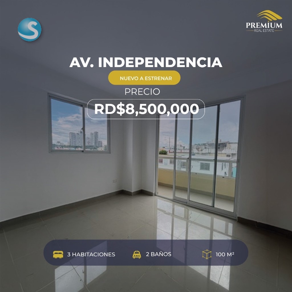 Avenida Independencia?? Nuevo a estrenar ?? 3 habitaciones 2 baños 4to piso (NO ASCENSOR) 100 m2 Área de lavado Balcón 1 parqueo techado Portón eléctrico Gas común Inversión RD$8,500,000 (negociable) Jd