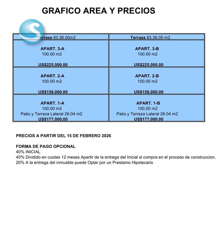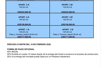 Elegante y Clásico Residencial Familiar de Tres (3) Niveles con Hermosos y confortables apartamentos de 2 Habitaciones y 2.5 Baños con diseños funsionales y vanguardistas de excelente terminación que estarán ubicados en la Mejor Zona de la Urbanización Miramar en la Av. Independencia. *DESCRIPCIÓN GENERAL:* Apartamentos de 100 m2 2 Dormitorios 2 y ½ Baños Cocina Pantry Área Lavado Balcón Comedor Sala 1 Parqueo *TERMINACIÓNES GENERALES -Pisos de Porcelanato -Puertas y Gabinetes en Preciosa. -Ventanas Correderas Aluminio Vidrio. -Techos y Cornisas en Yeso. -Tinaco de 265 gls/ Apto. -Portón Eléctrico. -Intercom. -Inversor en el área Común. ***1ER. NIVEL CON PATIO *** APTO. DE 100 METROS + 24.06 METROS DE PATIO USD$177,000.00 ***2DO. NIVEL .*** APTO. DE 100 METROS USD$158,000.00 ***3ER. NIVEL CON TERRAZA TIPO PENTHOUSE*** APTO. DE 100 METROS CON AMPLIA TERRAZA DE 83.09 METROS ADICIONALES USD$255,000.00 *PRECIOS DESDE US$158,000* FORMA DE PAGO: 40% DE INICIAL PARA PAGAR DURANTE EL PROCESO DE CONSTRUCCION FINANCIAMIENTO HASTA UN 60%. ***FECHA DE ENTREGA: NOVIEMBRE 2O26*** LE ASESORAMOS Y AYUDAMOS CON LA GESTION DE SU FINANCIAMIENTO. PARA MAS INFORMACION CONTÁCTENOS: NORELIN AQUINO 829-797-0404 ONASIS RODRIGUEZ 809-271-3900