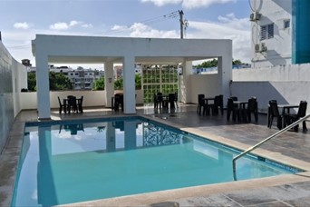 Residencial Aqua 7, Av. Jacobo Majluta Residencial Cerrado con Vigilancia y Cámara de Seguridad Con Club Recreativo, Piscina, Gimnasio, Gacebo Multiuso, Área de Cancha de Mesa y Juegos de Infantiles, Baños en Área de Piscina Primer nivel con Área terraza o Patio 3 habitaciones Habitacion principal con Walk-in Closet 2 baños Cuarto de Servicio con Baño Sala Comedor Cocina con Desayunador Closet de Ropa Blanca Hierros en todo el Apartamento 2 Parqueos 120 metros Libre de Cargas y Gravamen RD$ 5,100,000 negociable