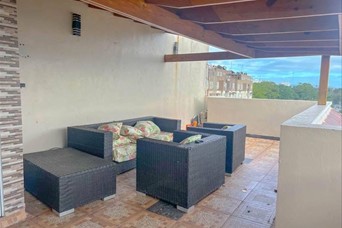 4to piso con terraza privada próximo a Av. Monumental 2 habitaciones 1 baño Sala Comedor Desayunador Cocina Terraza Balcón 1 parqueo Características del residencial Proyecto cerrado Luz 24 hrs Gimnasio Piscina Canchas Salón multiuso Terraza común Precio de venta RD$5,800,000 TOM. G.