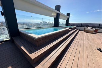 Apartamento de 1 habitación • Sala – comedor con excelente iluminación • Cocina funcional • Balcón con vista frontal • 1 baño • 1 parqueo en nivel -1 • Lobby tipo hotel Áreas sociales para disfrutar al máximo • 2 Jacuzzis • Sala al aire libre • Área de BBQ • Gimnasio equipado • Área de juegos para niños • 3 ascensores para mayor comodidad
