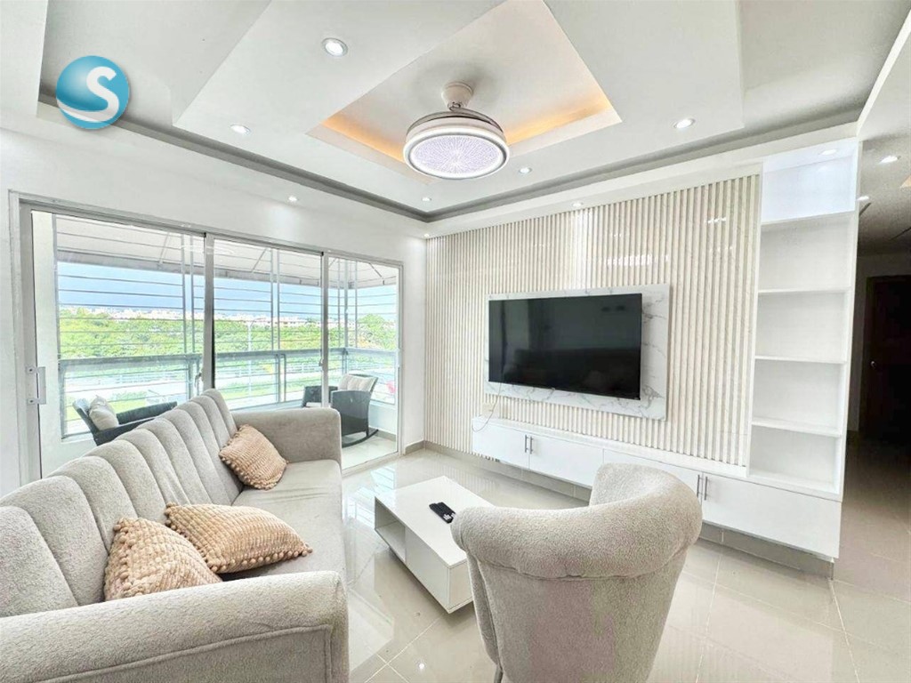 Venta próxima a la Av. República de Colombia Piso 2 3 habitaciones 2 baños Sala Comedor Cocina Terraza Balcón Área de lavado 2 parqueos *Amenidades y características de la torre Portón eléctrico Ascensores Luz 24 hrs Cámaras de seguridad Planta full Gimnasio Piscina Lobby *Precio de venta US$138,000 CONTACTO: Loa Brioso 849-255-3661 MAR. C.