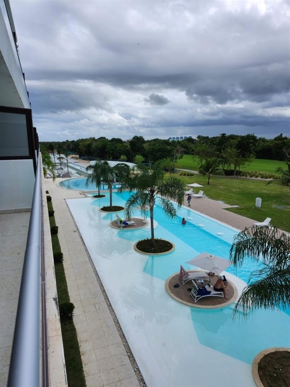 En venta | Cana Bay | Punta Cana | 113 Mts2 2 Habitaciones: Hab 1: Cama queen Hab 2: Cama queen y cama alta twin 2 baños completos Sala Comedor Cocina Balcón tipo terraza con Jacuzzi para 2 personas Totalmente amueblado 1 Parqueo Ascensor Club de Playa