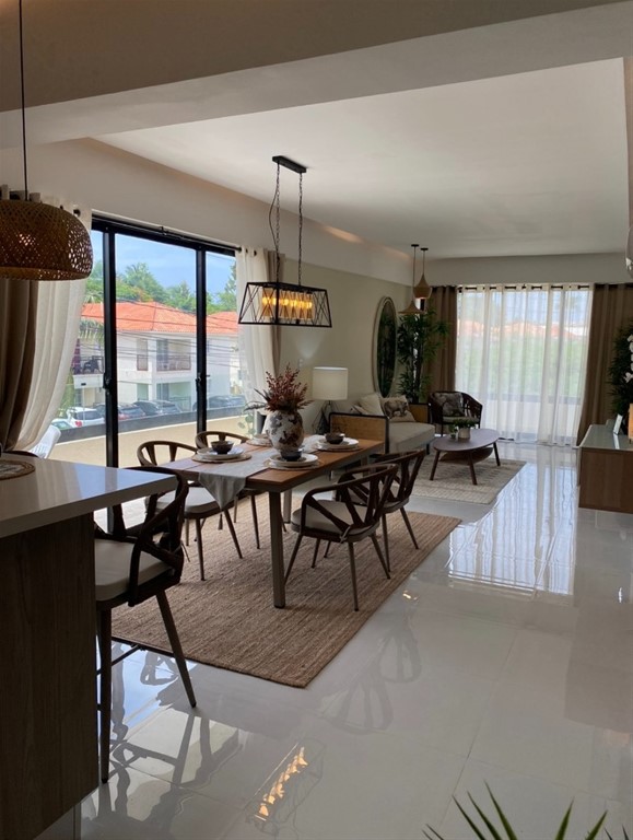 Hermoso Proyecto de Apartamentos en Bavaro, Apartamentos de 1, 2 y 3 habitaciones con acceso a la Playa. - 2 Habitaciones - 2 Baños - Balcon - Sala - Comedor - Cocina - 1 Parqueo - 94 mts2 - Primeras con patio y 3eras. con Techo de igual metraje Precio de Venta : Desde US$ 215,000 - 3 Habitaciones - 3 Baños - Balcon - Sala - Comedor - Cocina - 1 Parqueo - 118 mts2 - Primeras con patio y 3eras. con Techo de igual metraje Precio de Venta : Desde US$ 245,000 Areas Sociales : - Piscina - Gym - Terraza Comun Forma de Pago : - Separacion : 20% - Completar el 80% (45 - 60 dias)