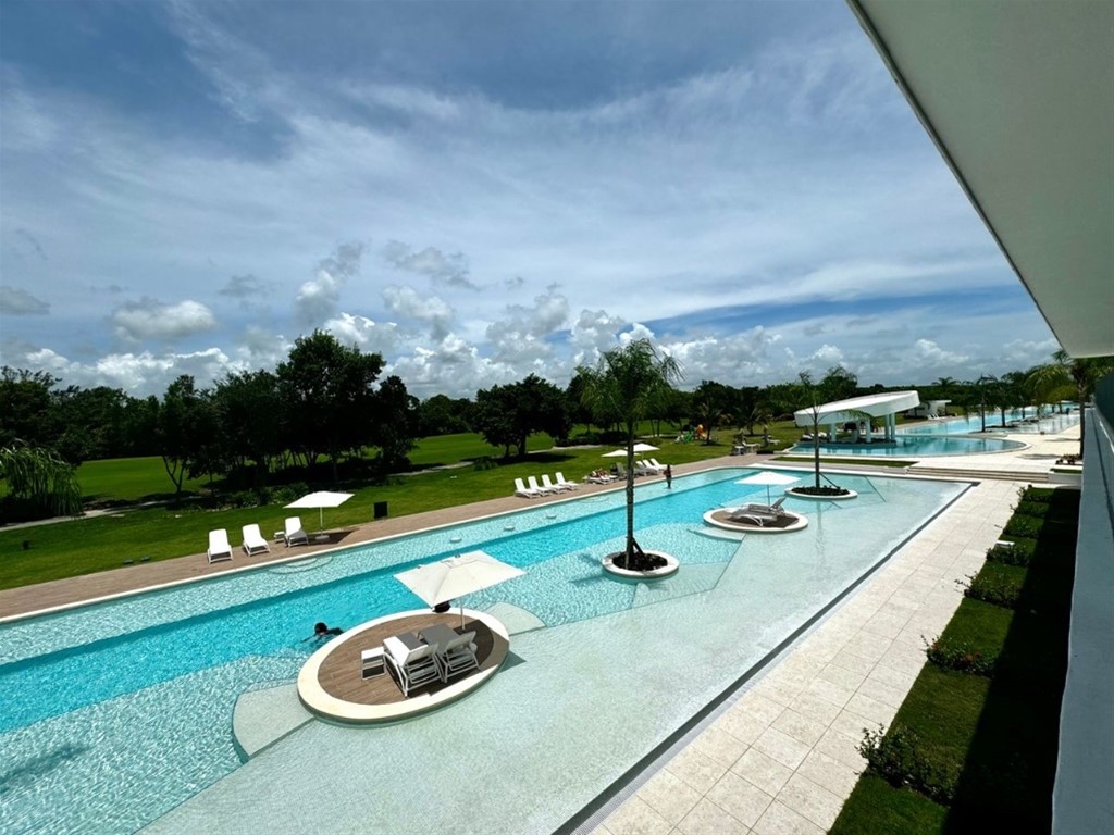 APARTAMENTO EN PUNTA CANA Exclusivo Condominio a solo 500 metros del Club de Golf Cana Bay, con espectaculares amenidades y beneficios que lo convierten en el lugar ideal para tu inversión. VENTA US$160,000 TOTALMENTE AMUEBLADO US$170,000 68 MTS | 1 HAB | 1.5 BAÑOS | AMPLIO BALCÓN Amenidades: Dos Piscinas tipo Laguna Dos Bares Gimnasio Equipado Área de BBQ Areas Infantiles Lobby Vistas al campo de golf Club de Playa Beneficios: Los propietarios pueden acceder a descuentos y precios preferenciales al momento de jugar golf y tenis, también obtienen un descuento al momento de hacer sus reservas en Hard Rock y los hoteles Riu.